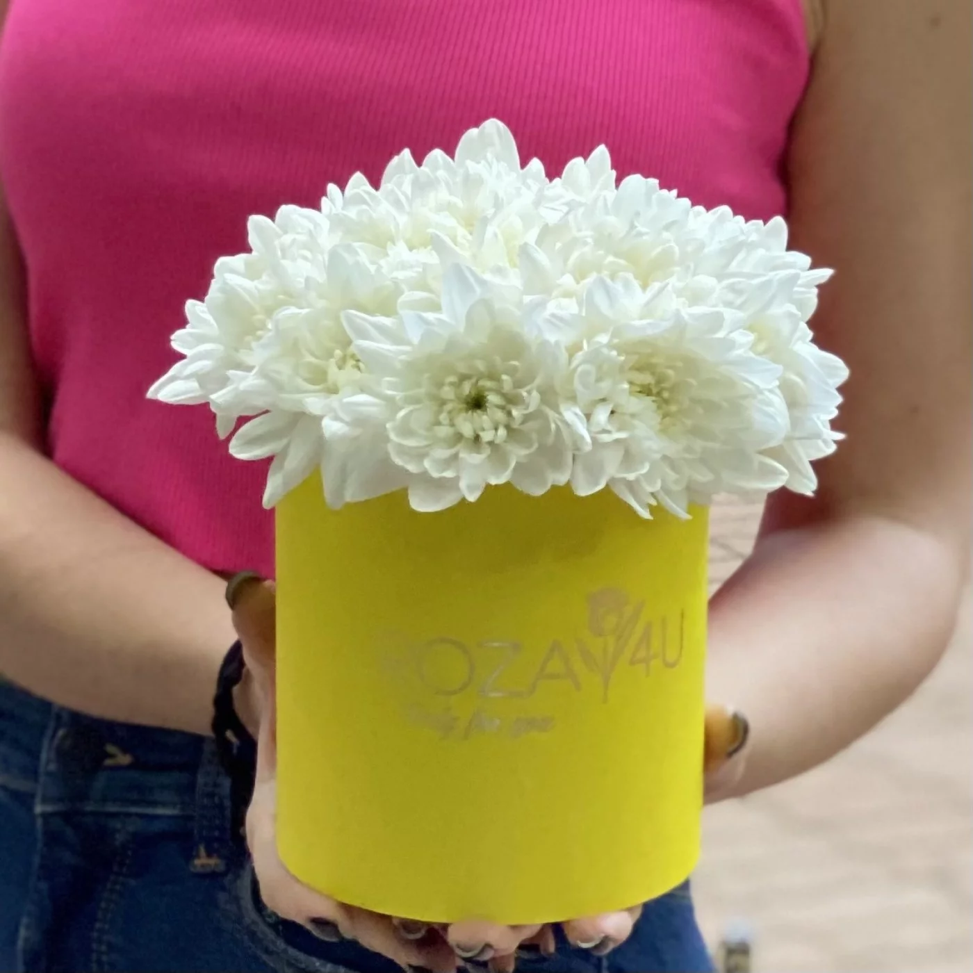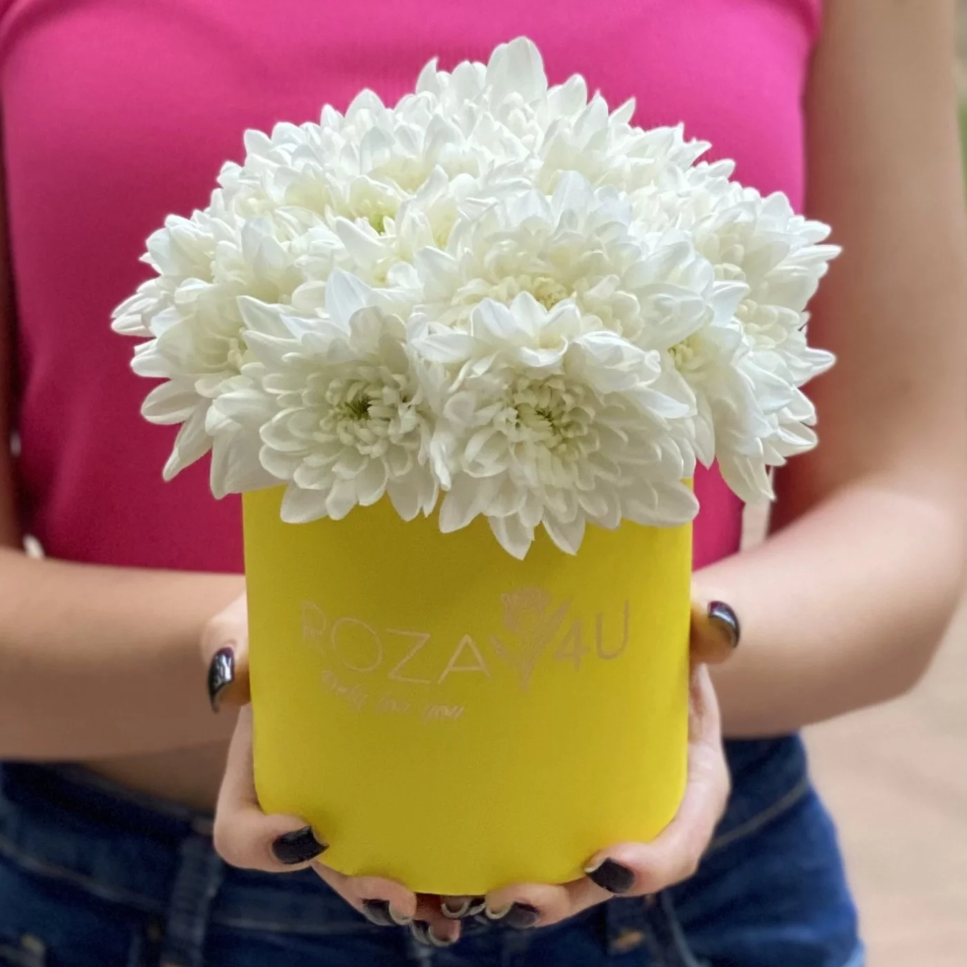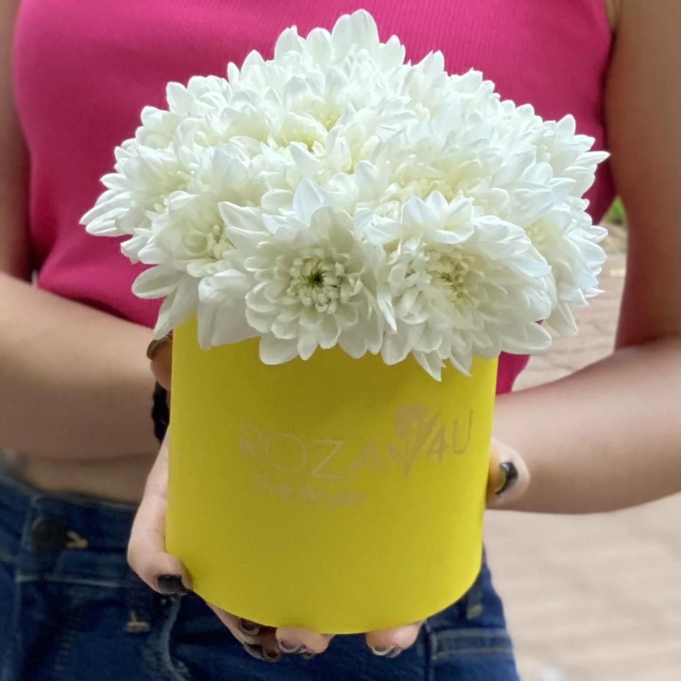 Нежная композиция в круглой желтой коробочке из кустовой белой хризантемы сорта Балтика отличный подарок коллеге или подруге в день рождения. Доставляем цветы в любую точку Москвы и области круглосуточно.