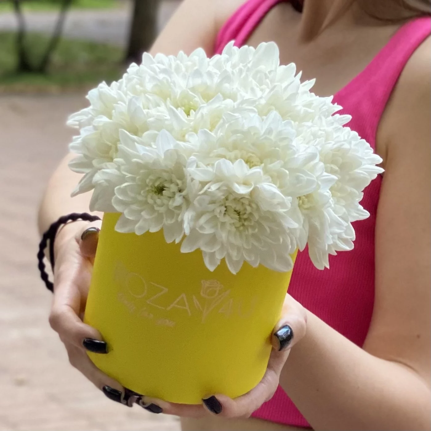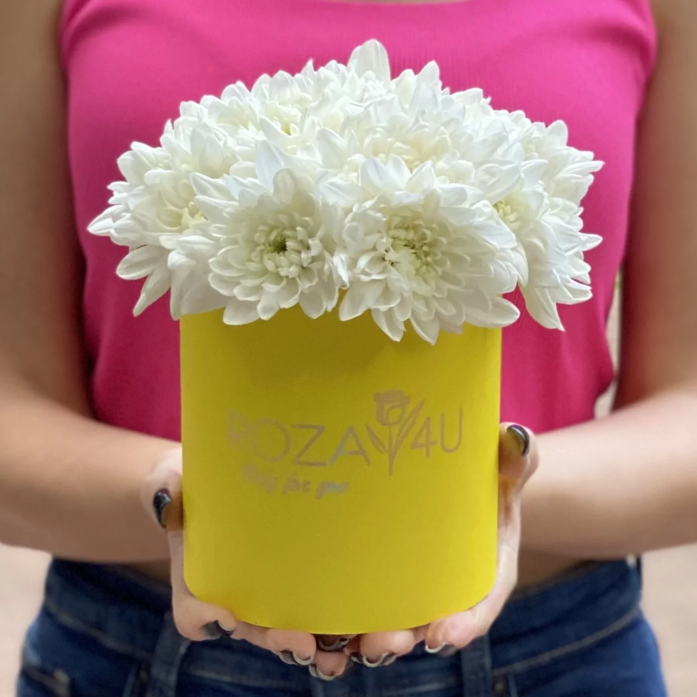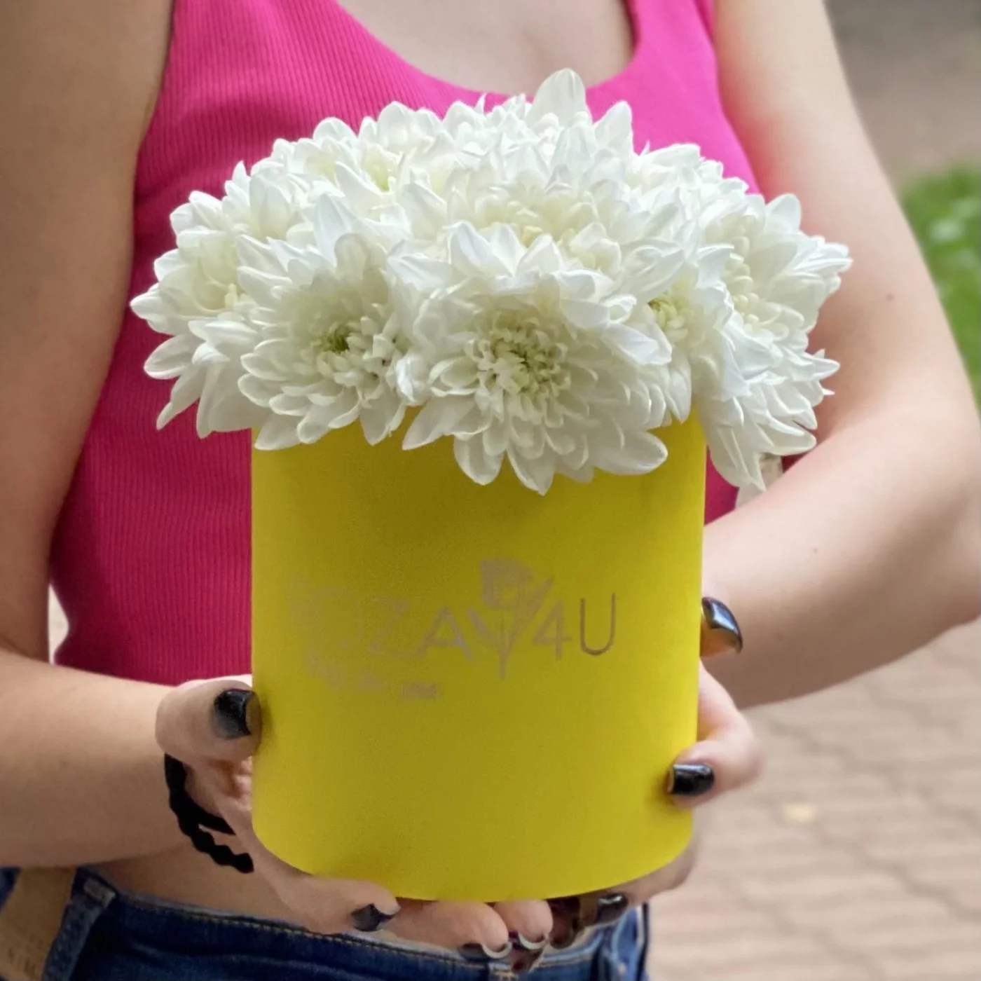 Нежная композиция в круглой желтой коробочке из кустовой белой хризантемы сорта Балтика отличный подарок коллеге или подруге в день рождения. Доставляем цветы в любую точку Москвы и области круглосуточно.