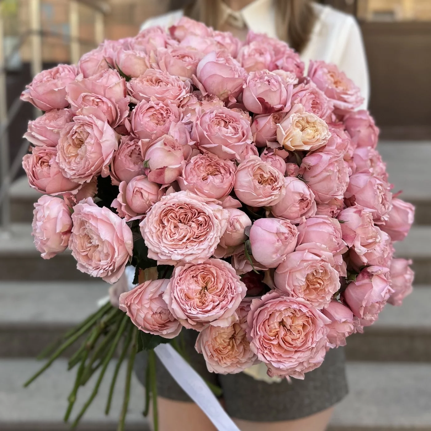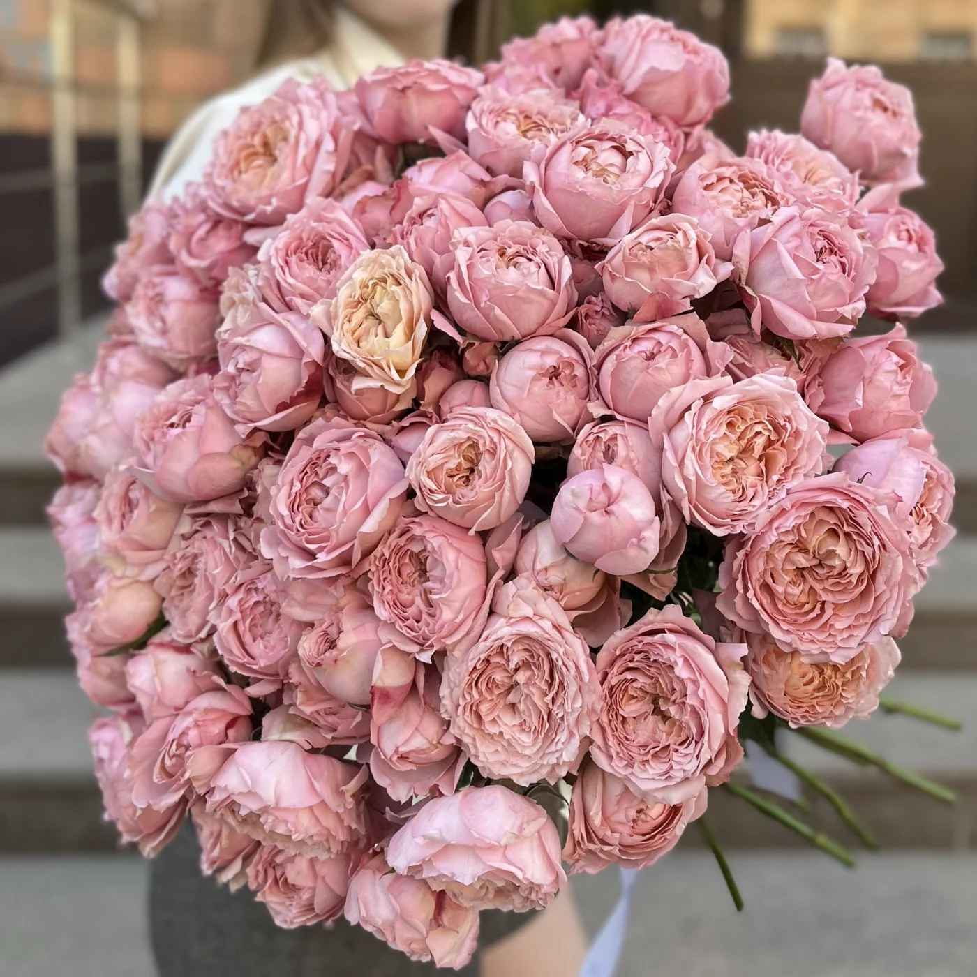Розы этого сорта имеют нежный персиковый или светло-розовый цвет с легким абрикосовым оттенком.