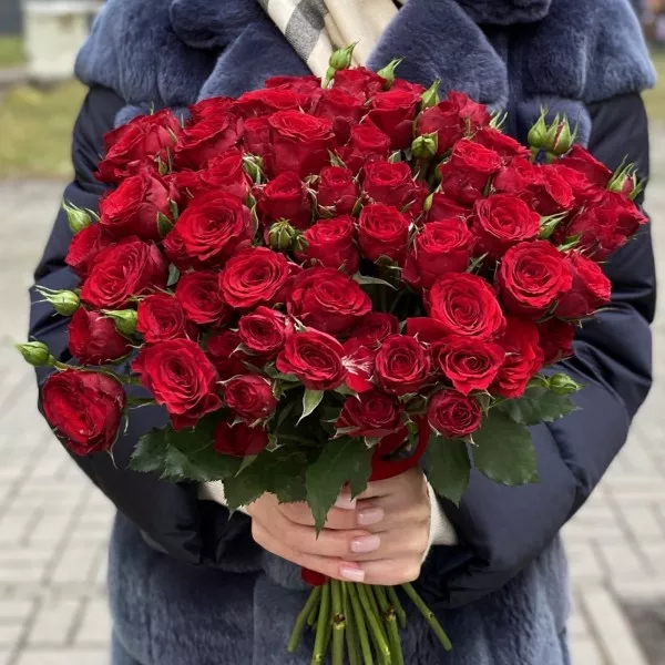 На фото представлен букет из 19 роз.