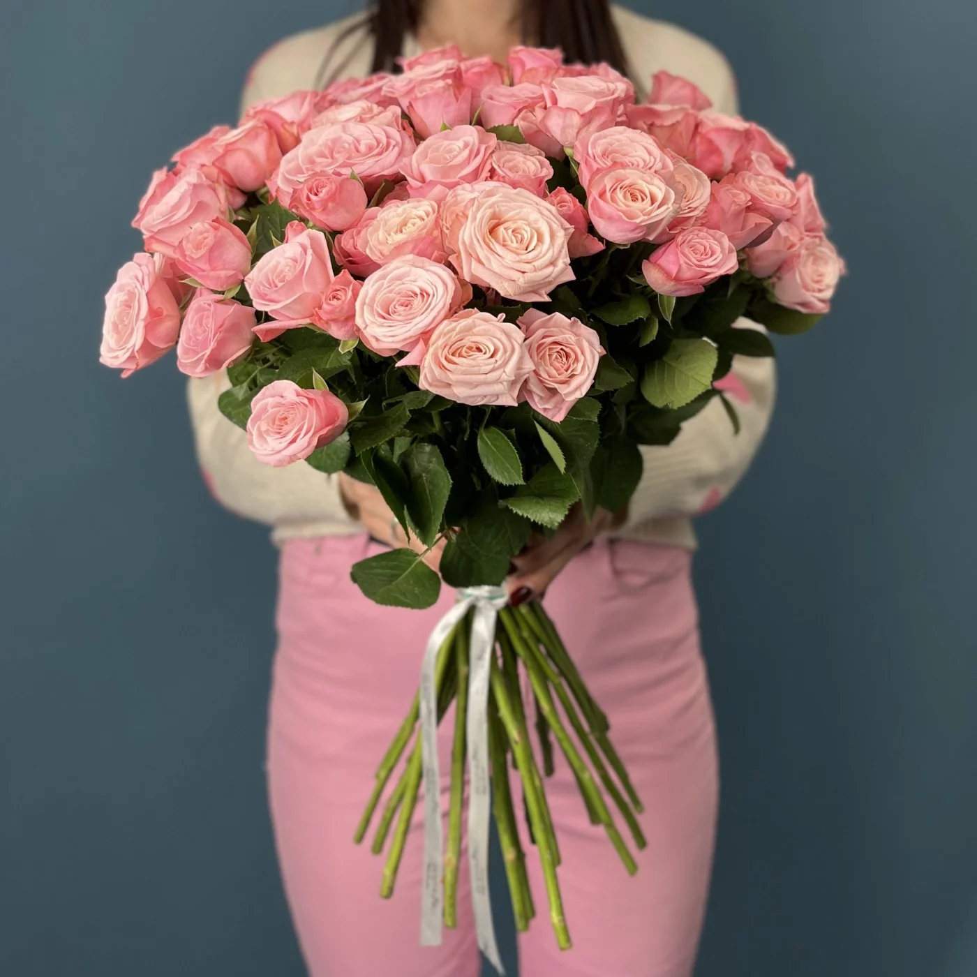 Кустовая розовая роза Бердс Нест 50 см - это изящное и яркое цветочное решение, которое отлично подойдет для подарка или украшения интерьера.