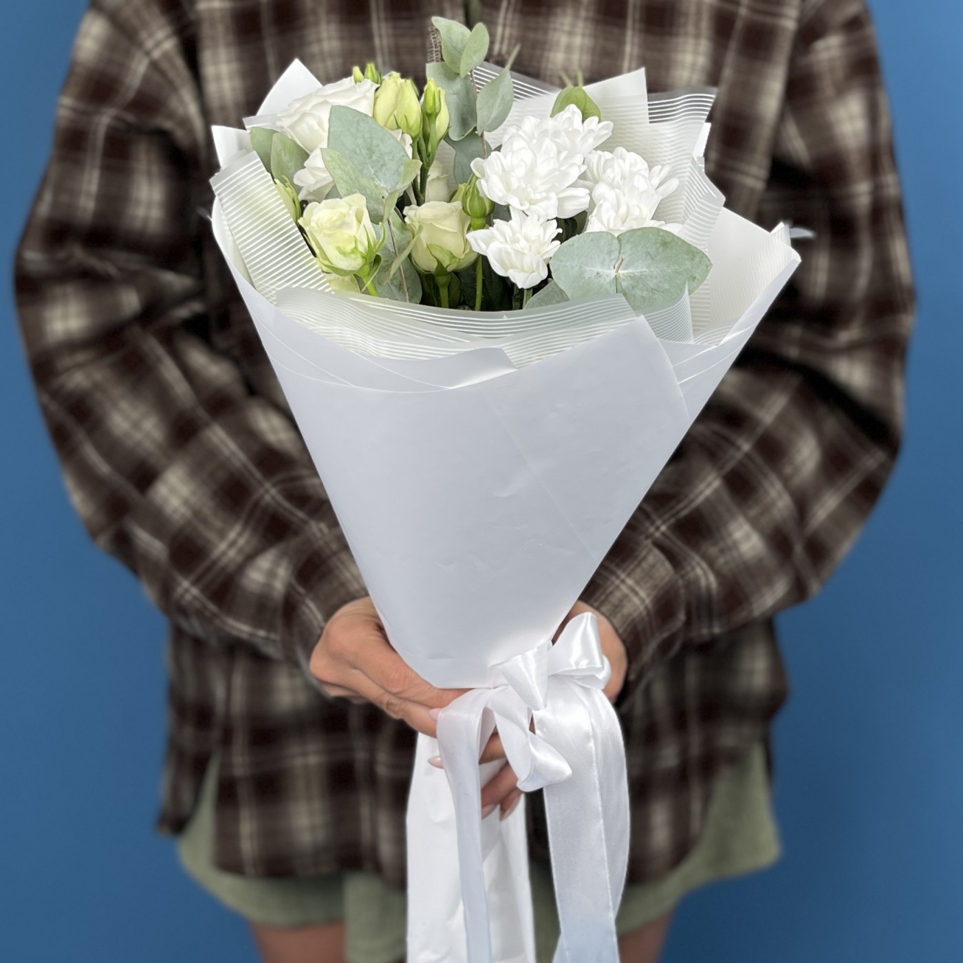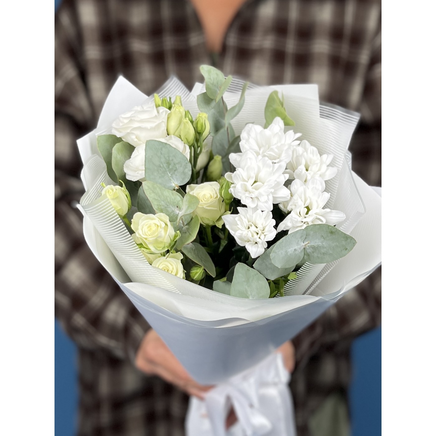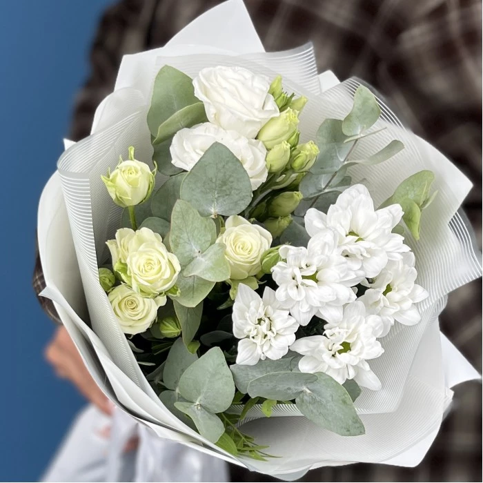 Подарите воплощение чистоты, нежности и элегантности с нашим великолепным белым букетом "Белоснежное Величие". Этот изысканный ансамбль, составленный из белых цветов, станет идеальным выражением ваших самых искренних чувств и безупречного вкуса.