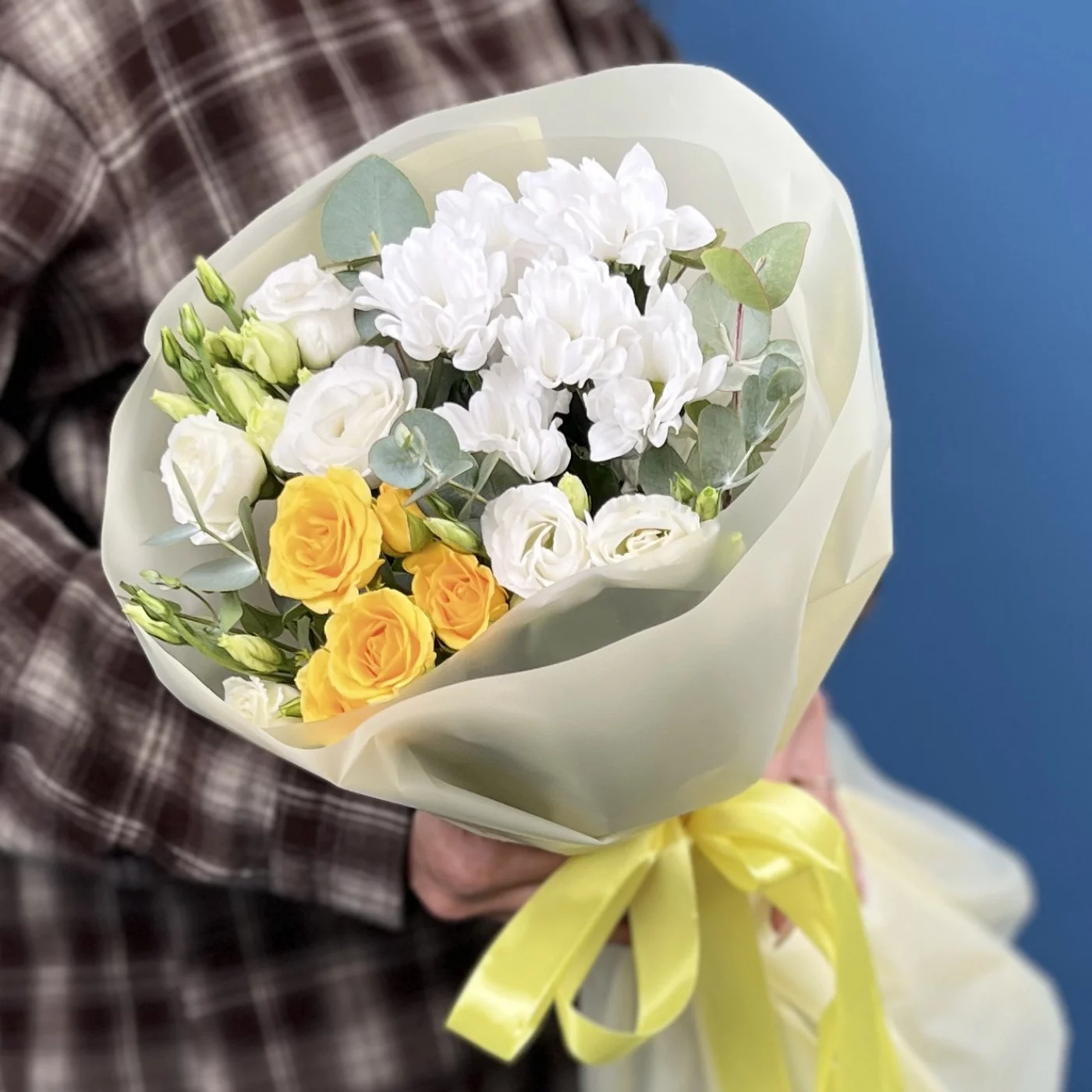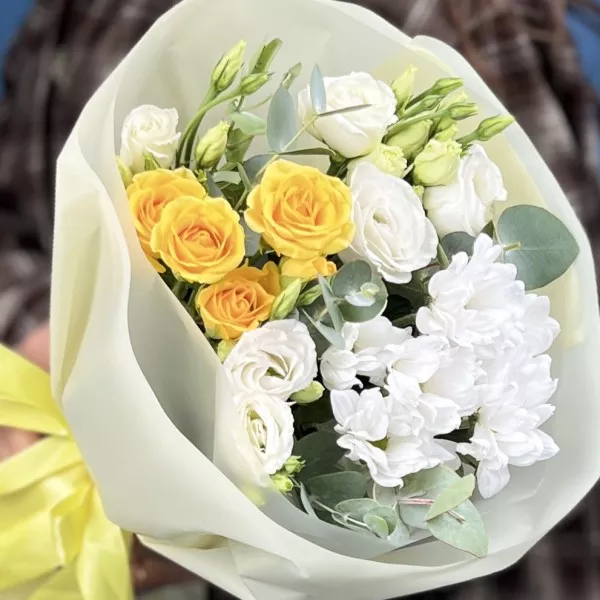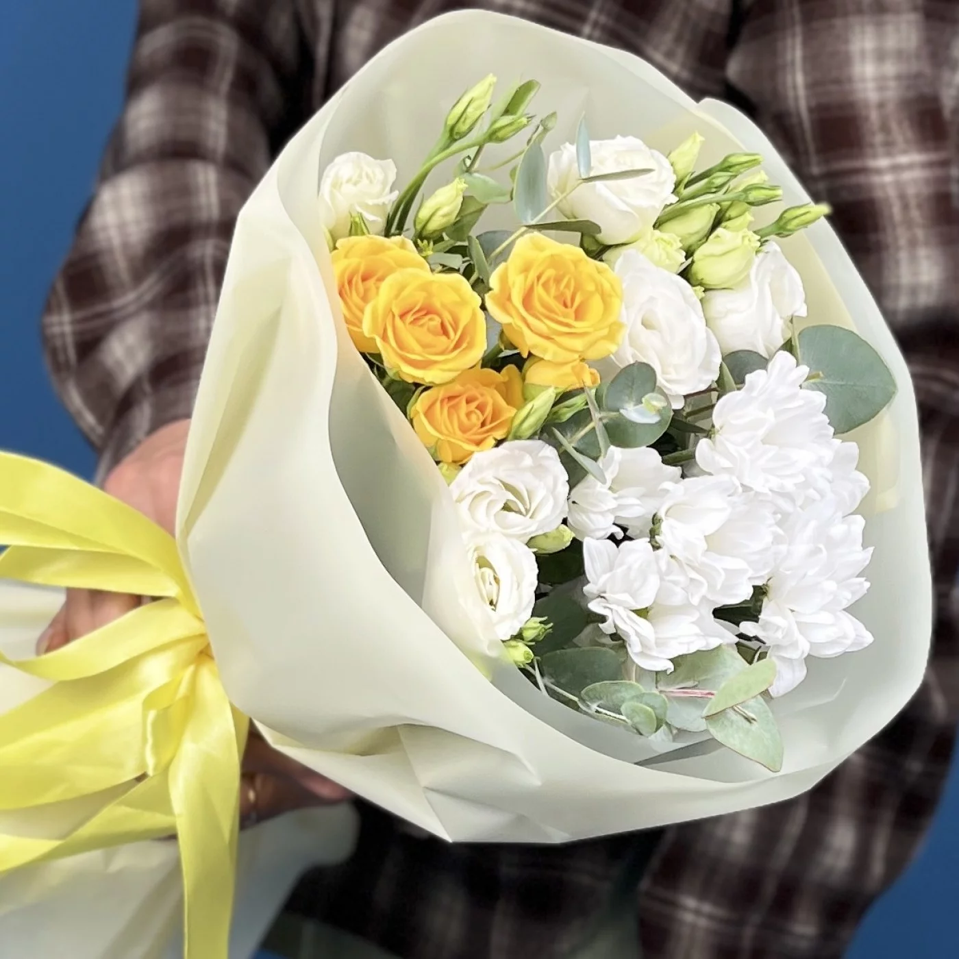 Позвольте солнцу ворваться в вашу жизнь с букетом "Солнечный Луч" – настоящим воплощением тепла, света и безмятежной радости. Этот изысканный ансамбль из тщательно отобранных желтых и белых цветов создан, чтобы подарить улыбку и наполнить сердце светлыми чувствами.