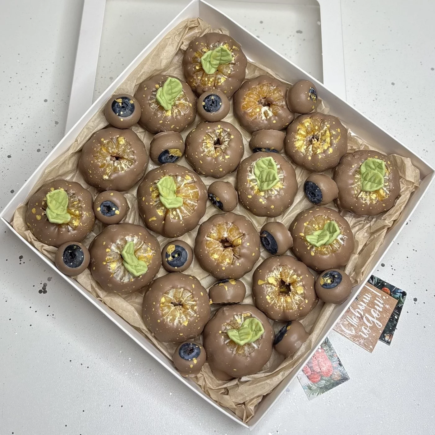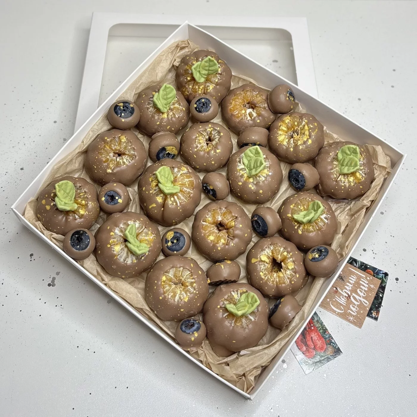 Сочный и ароматные мини мандарины с голубикой в молочном шоколаде. Красивый и вкусный подарочный набор не только на день рождения но и на Новый год для коллег.