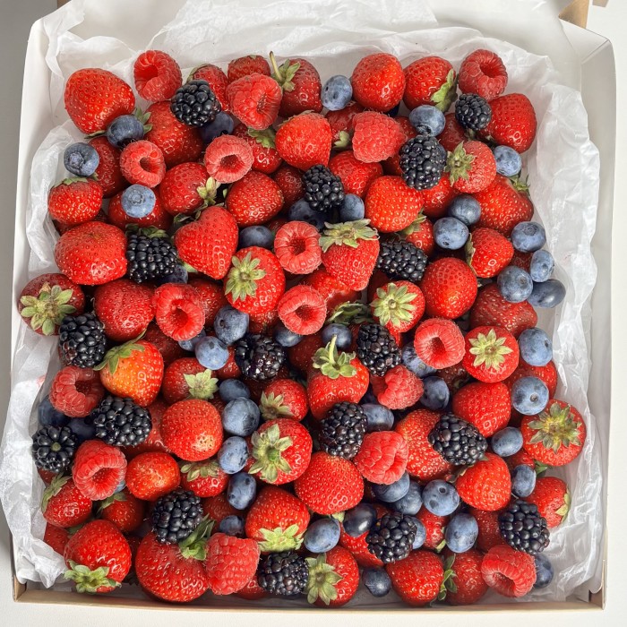 Мега коробка с ягодами клубники ежевики голубики и малины 1500гр