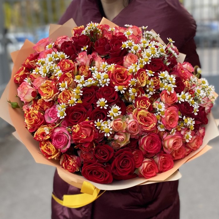 Микс кустовых роз с ромашками