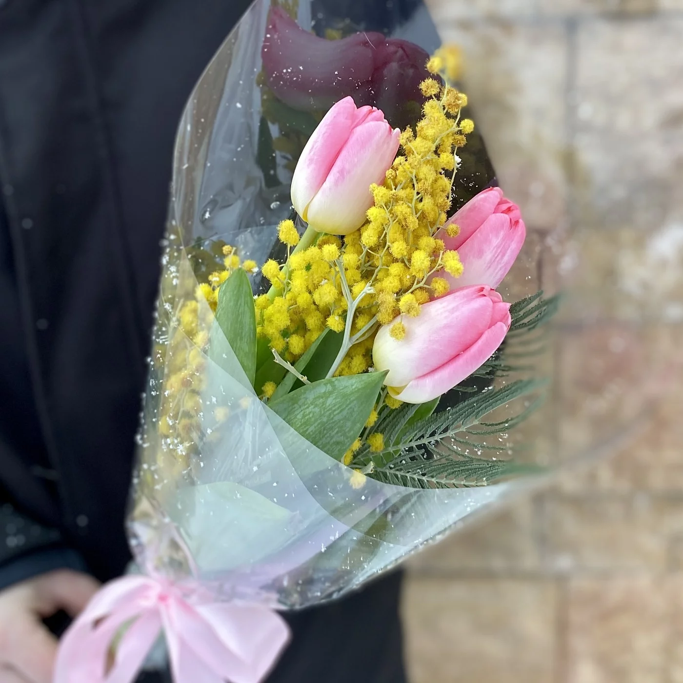 Мини букет тюльпанов и мимозы