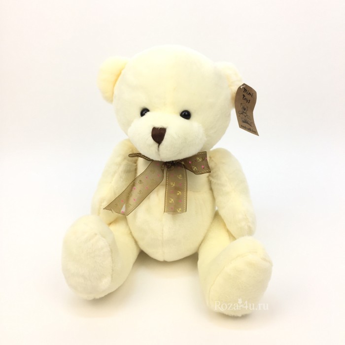 Мишка с бантом кремовый