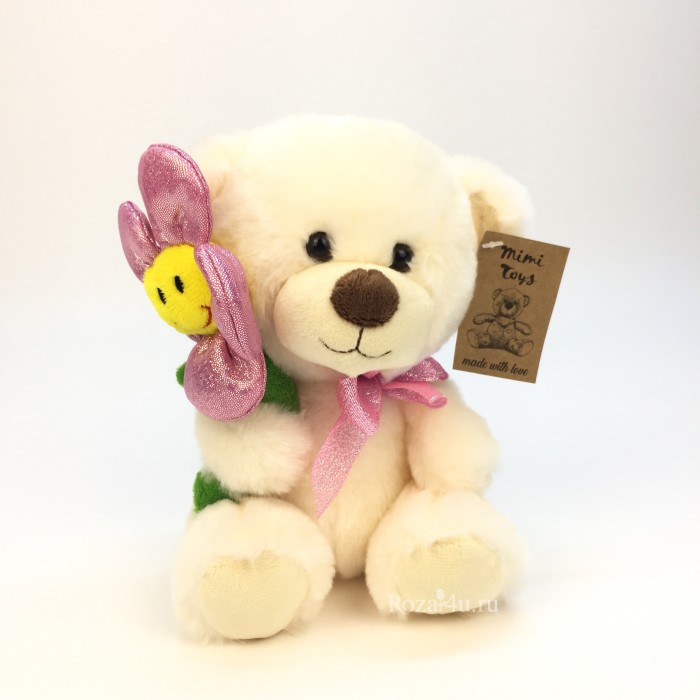 Мишка с цветком розовый