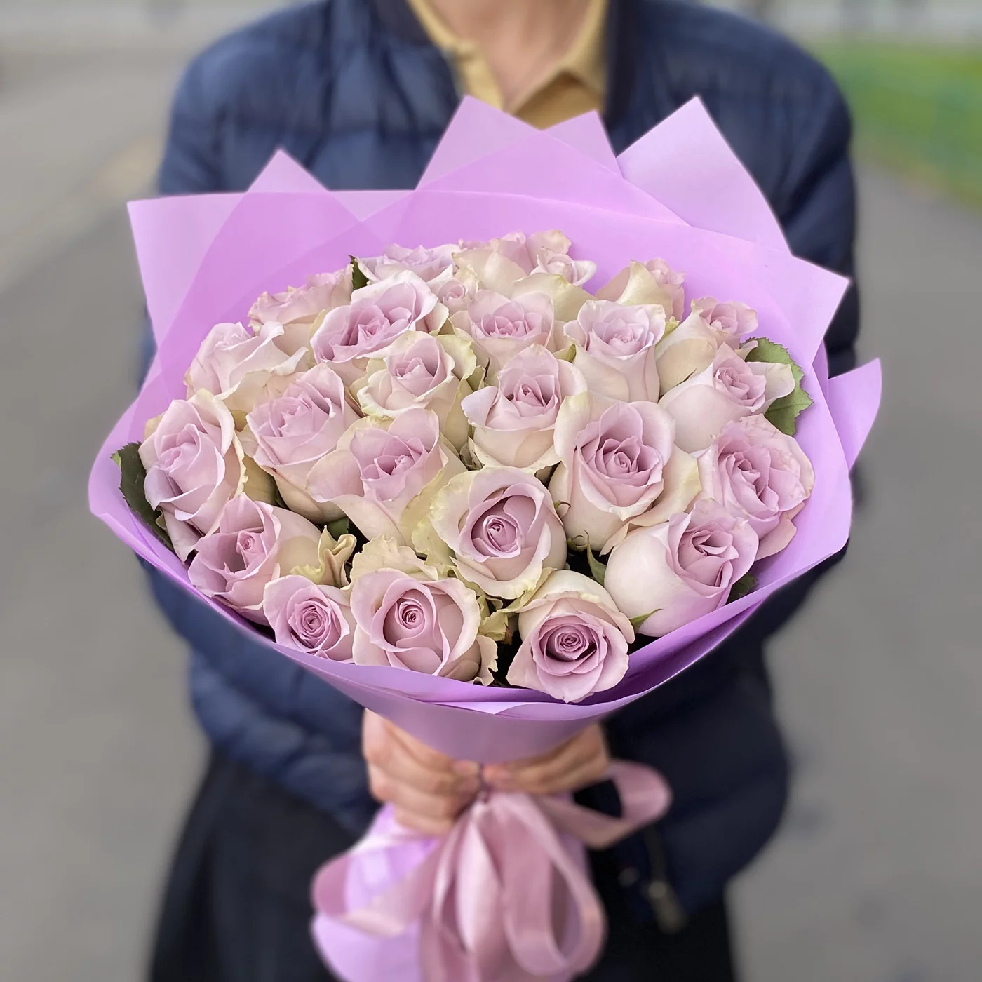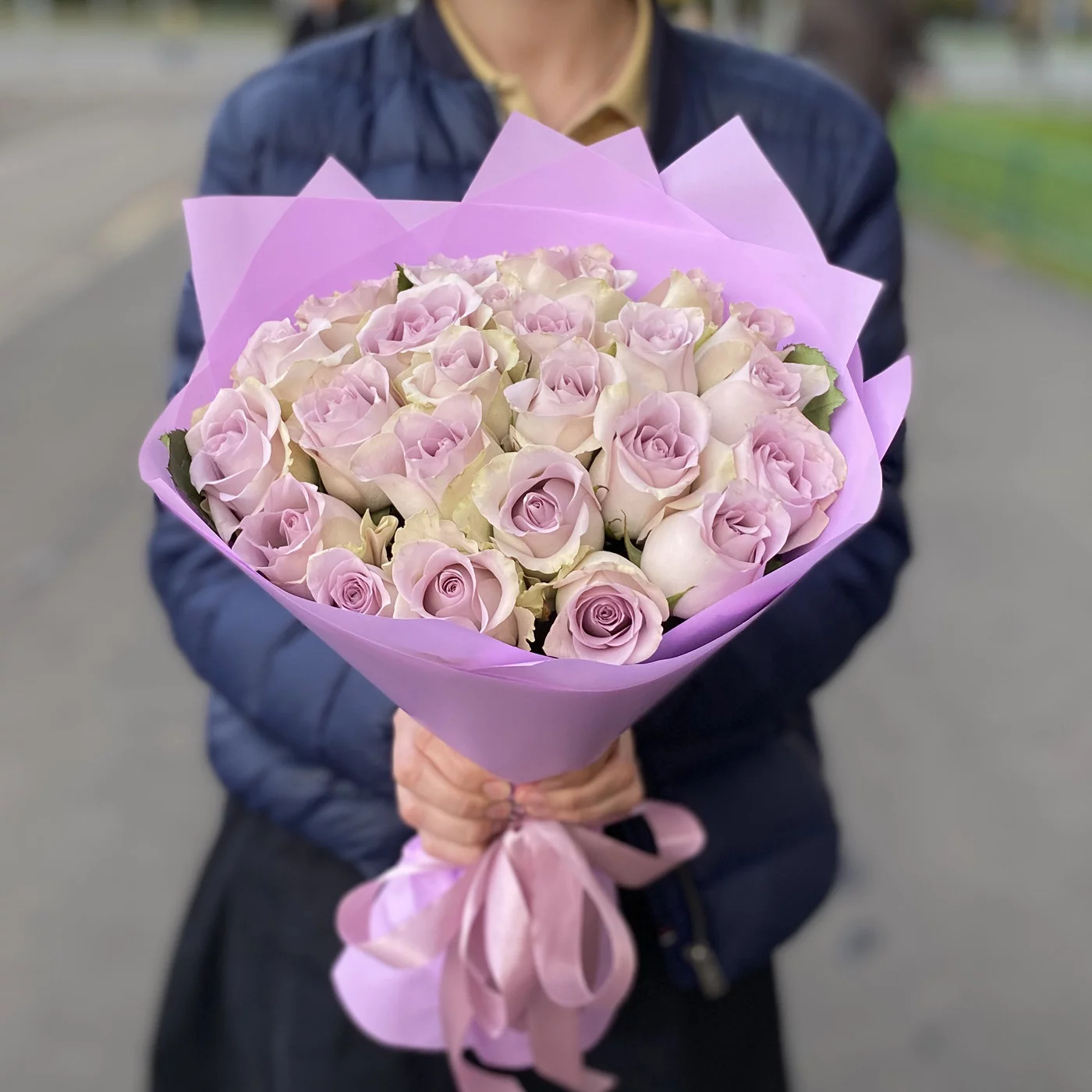 Пожалуй, это идеальный букет в подарок любимой, своей жене или маме, на любой праздник и просто без повода. Изысканная и чистая красота сиреневых роз выражает любовь, передает самые нежные, искренние и чистые чувства, благодарность и любовь.