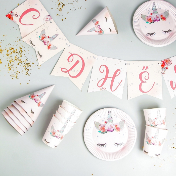 | Набор бумажной посуды одноразовый Единорог», 6 персон 1 гирлянда | 1 |