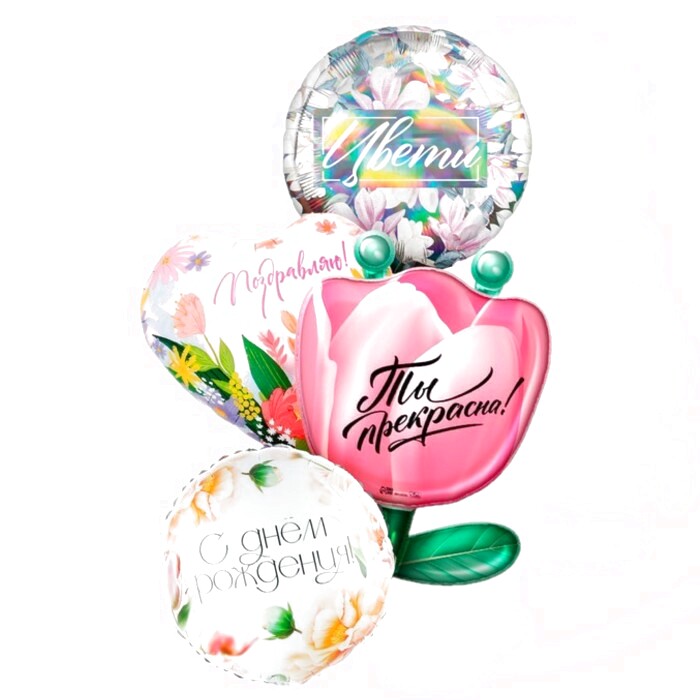 Набор фольгированных шаров Цветы. Приятно украсит букет или композицию с цветами. Дарите радость и хорошее настроение своим любимым.