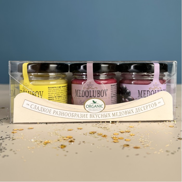 300гр| Набор медового суфле в подарочной упаковке, 3 шт/40 мл | 1 |