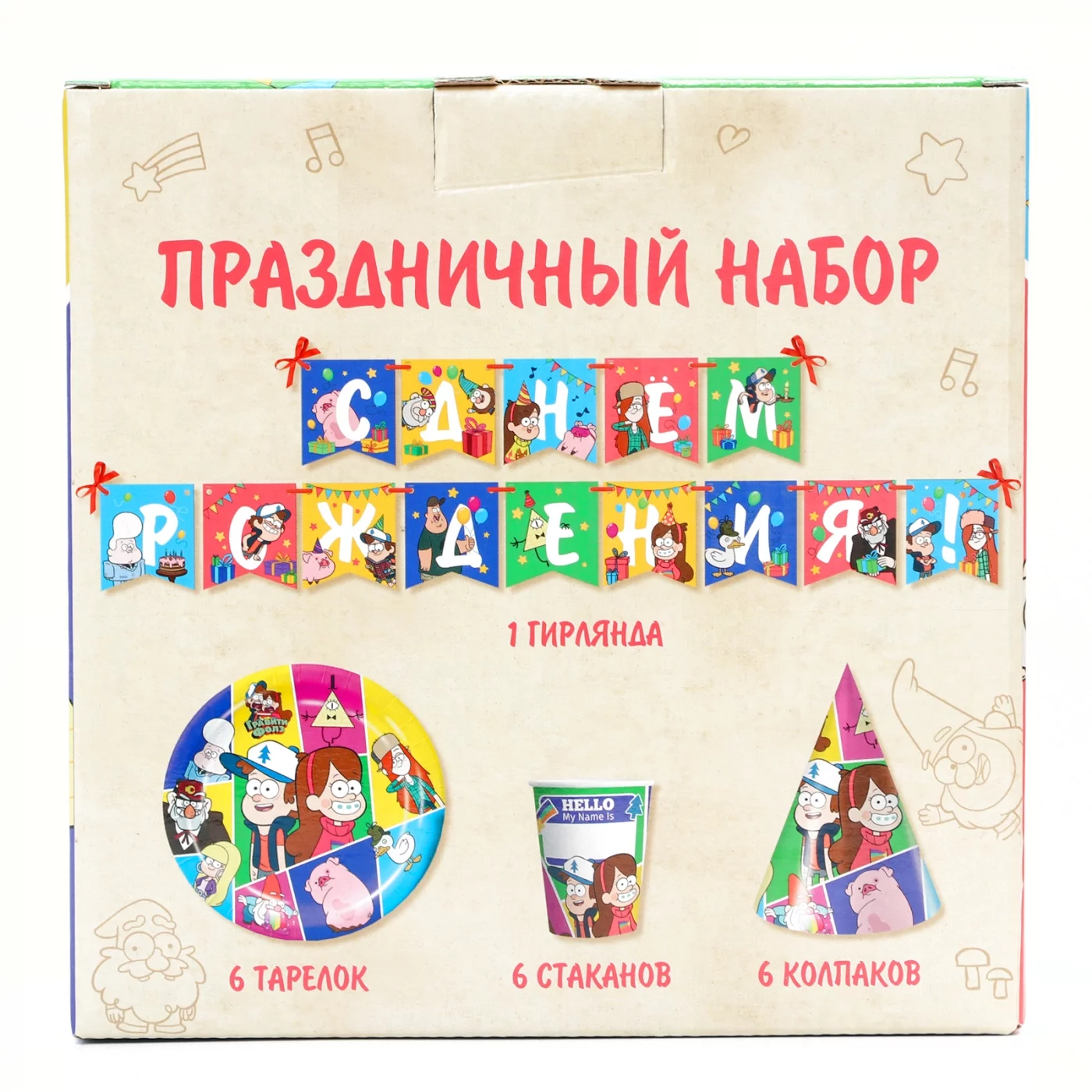 | Набор одноразовой бумажной посуды, на 6 персон "С днем рождения!", Гравити Фолз | 1 |