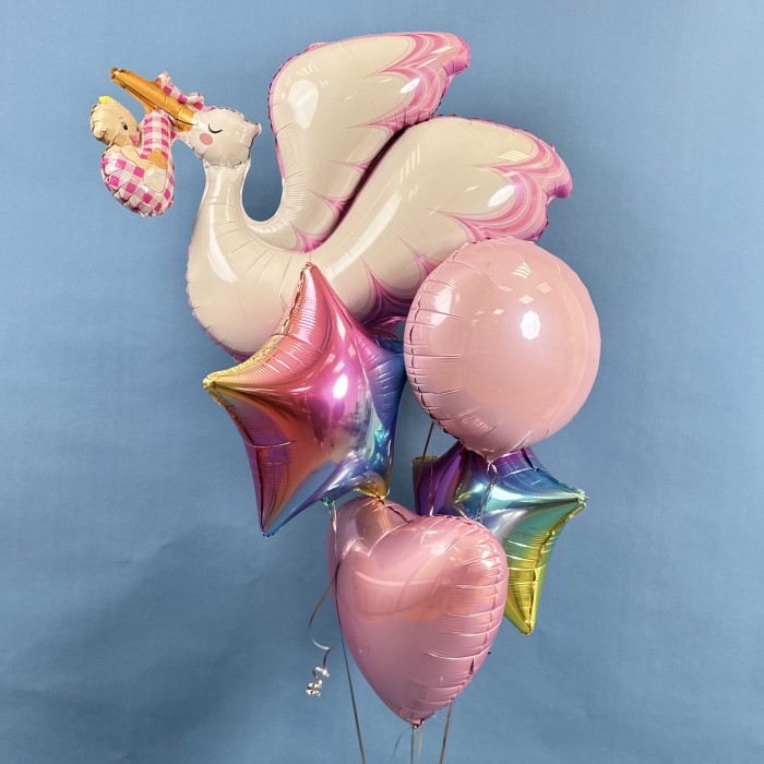 Набор шаров для девочки Аист прилетел — это нежное и символичное украшение, которое подчеркнёт важность момента и подарит тёплые эмоции. Такая композиция станет красивым акцентом праздника и надолго сохранится в памяти и на фотографиях.