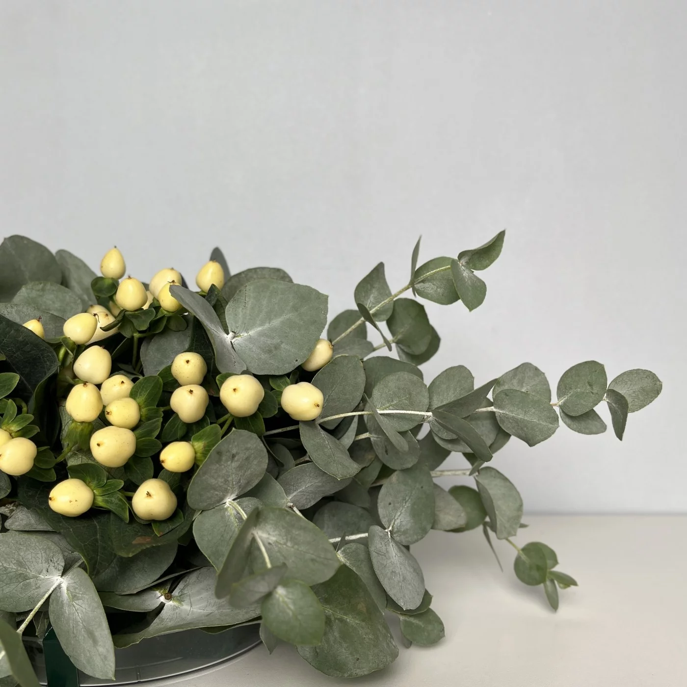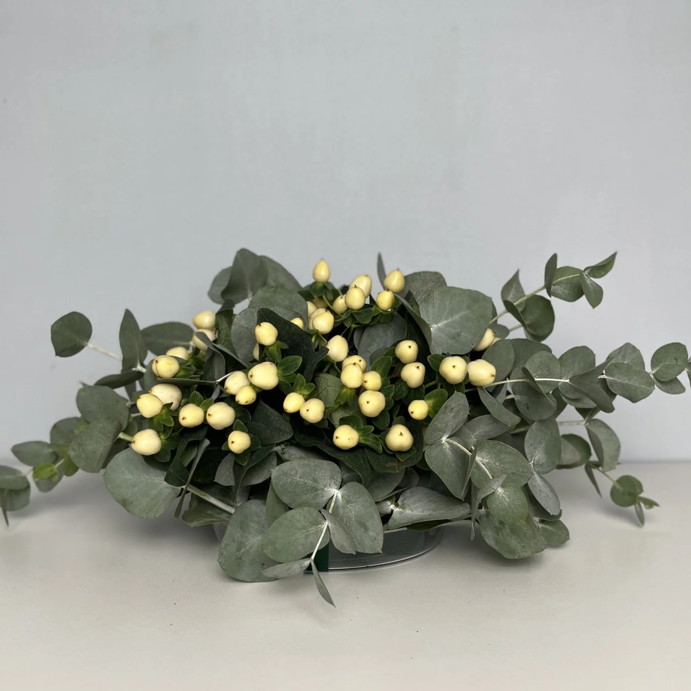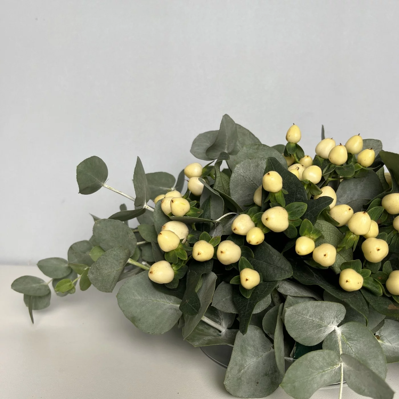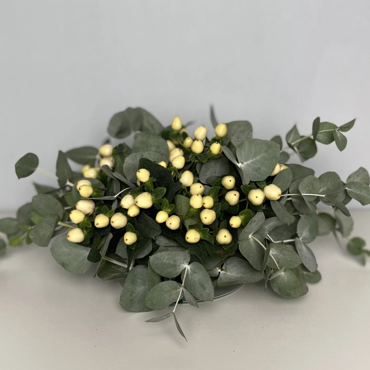 Настольная композиция с белым гиперикумом — это не только стильный декор, но и способ привнести в пространство атмосферу уюта и гармонии. Она станет нежным акцентом в любом интерьере.