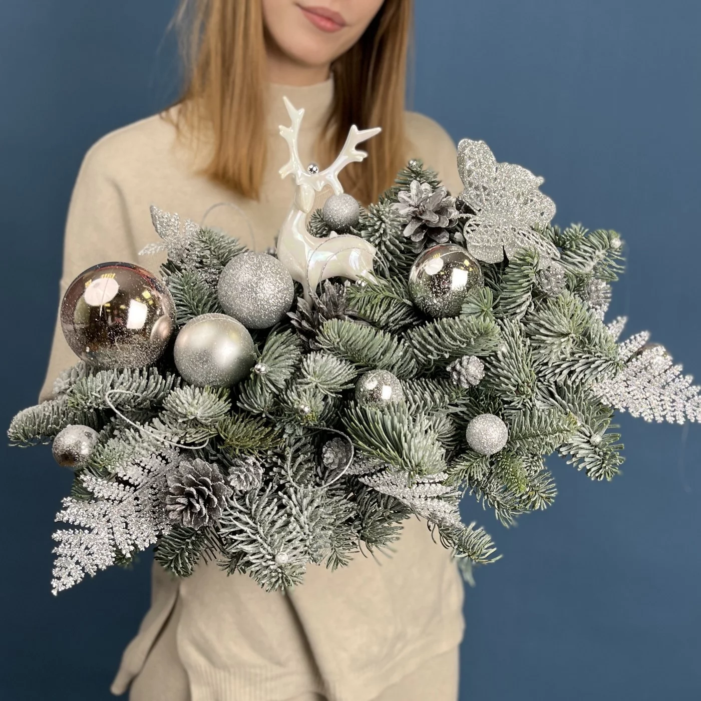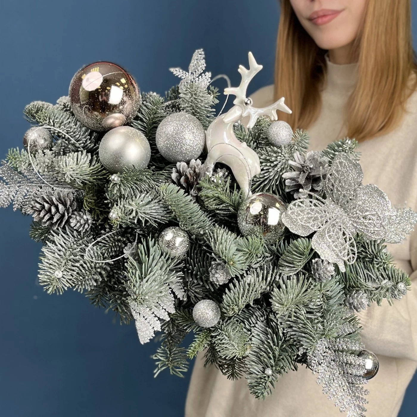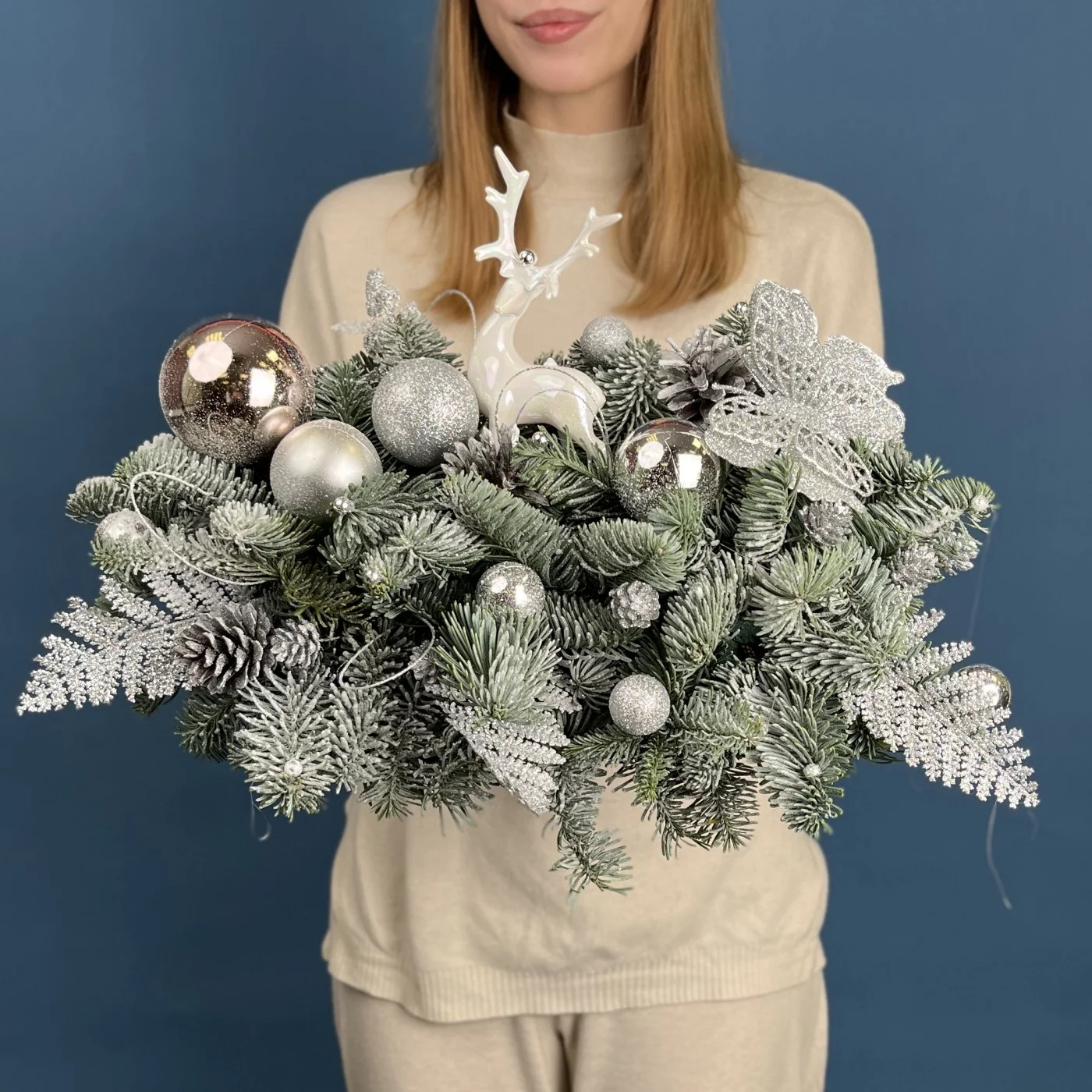 Композиция Сияние праздника станет великолепным украшением вашего стола, создавая атмосферу праздника и уюта на вашем доме.