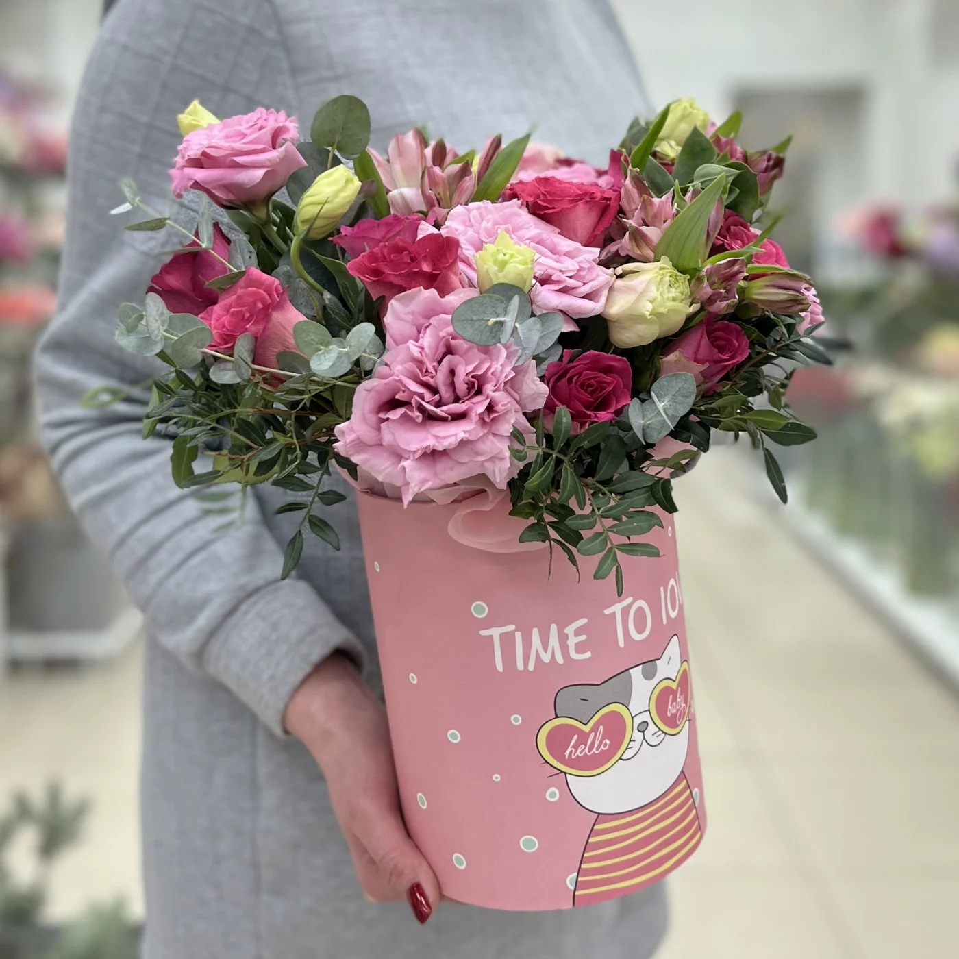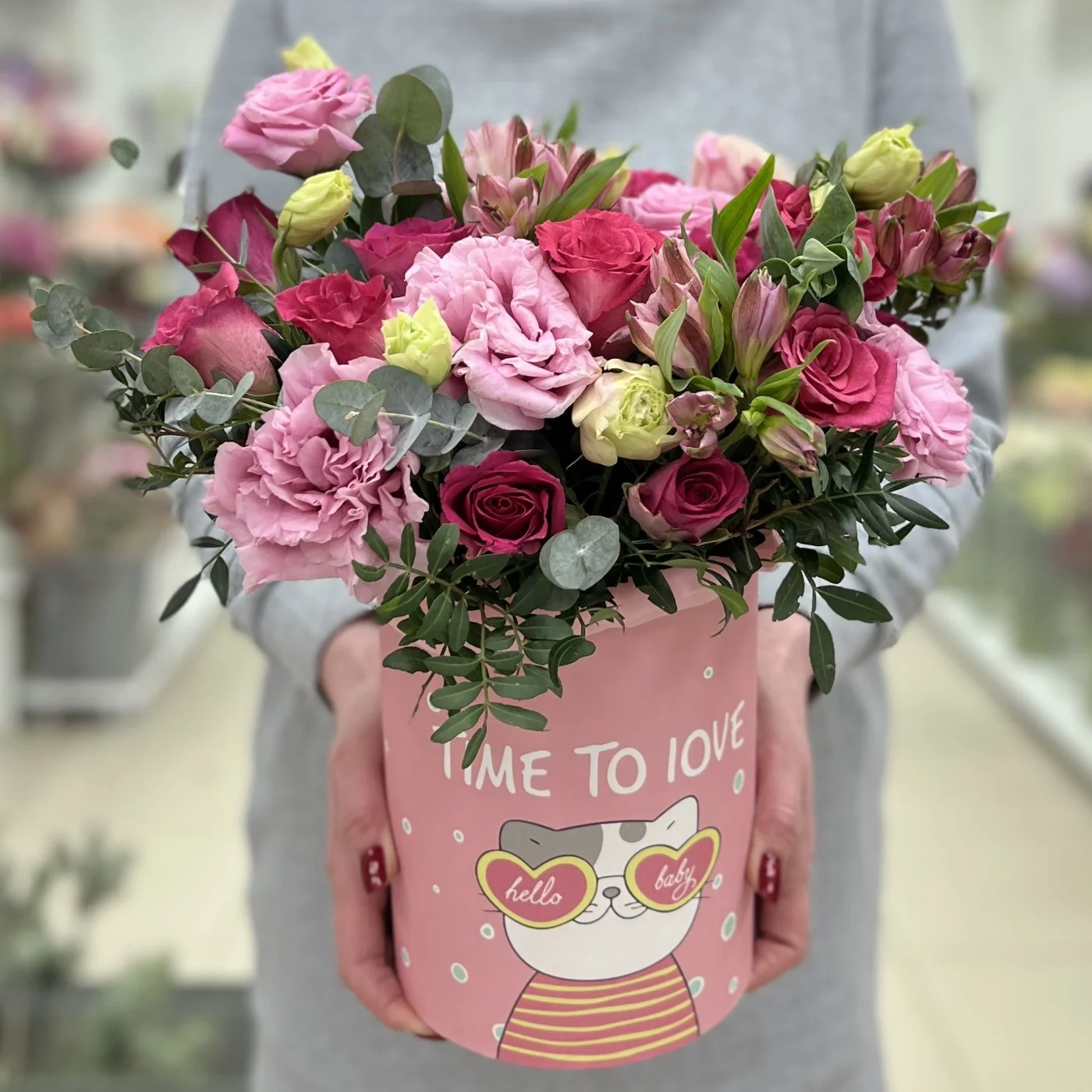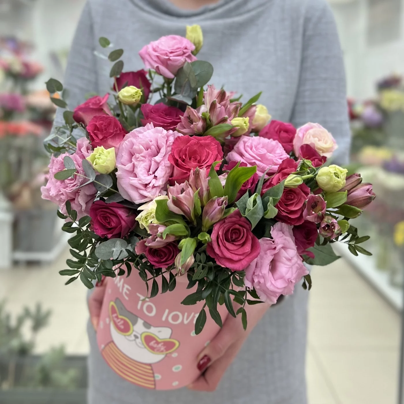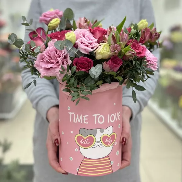 Композиция из нежной эустомы и роз в коробке — это не просто цветы, а красивое выражение ваших чувств и эмоций. Этот букет станет настоящим украшением любого события и будет радовать долгое время. Позвольте ему стать символом вашей заботы и любви.