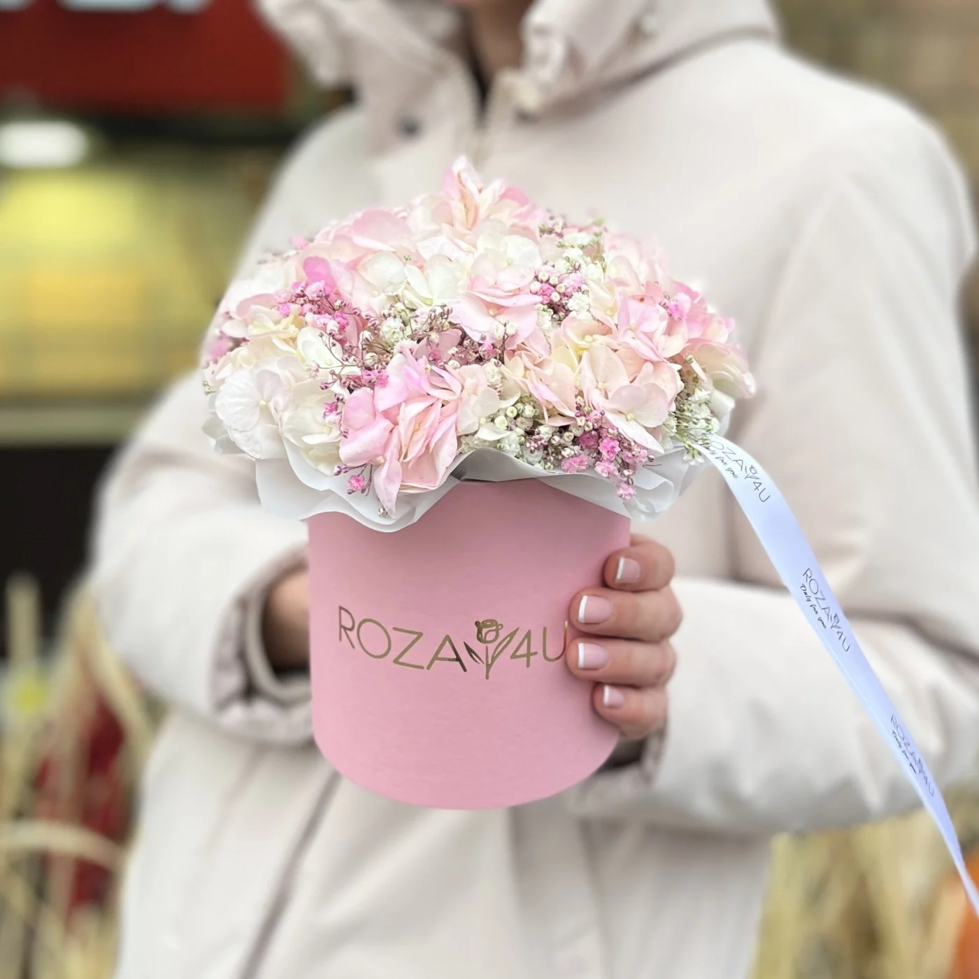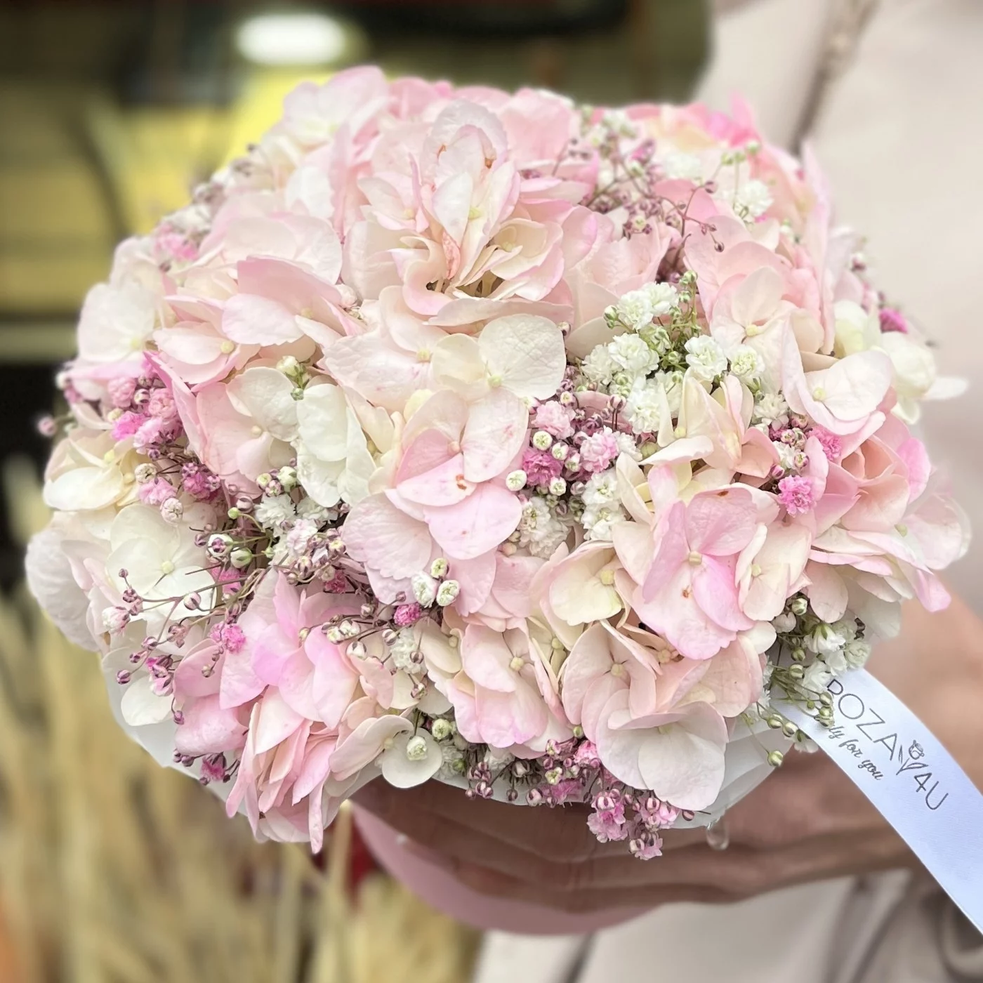 Пышное облачко из розовой и белой гипсофилы с гортензией — это идеальный комплимент для самой нежной девушки на свете. Эта композиция станет прекрасным подарком на день рождения, 8 Марта или просто так, чтобы выразить свою любовь, благодарность или восхищение. Композиция идеально подойдет для мамы, сестры, подруги или коллеги, даря им улыбки и радость.