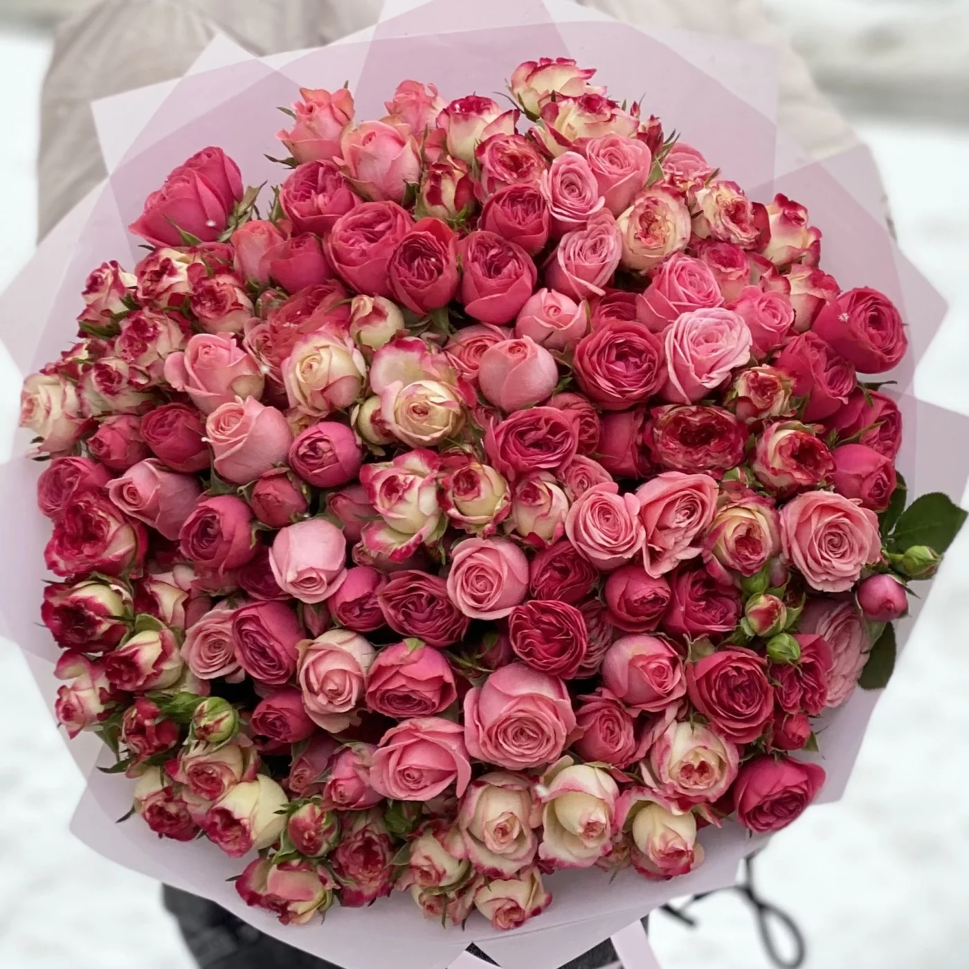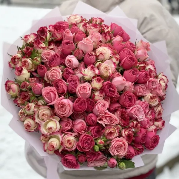 Нежно-розовый микс из кустовых пионовидных роз