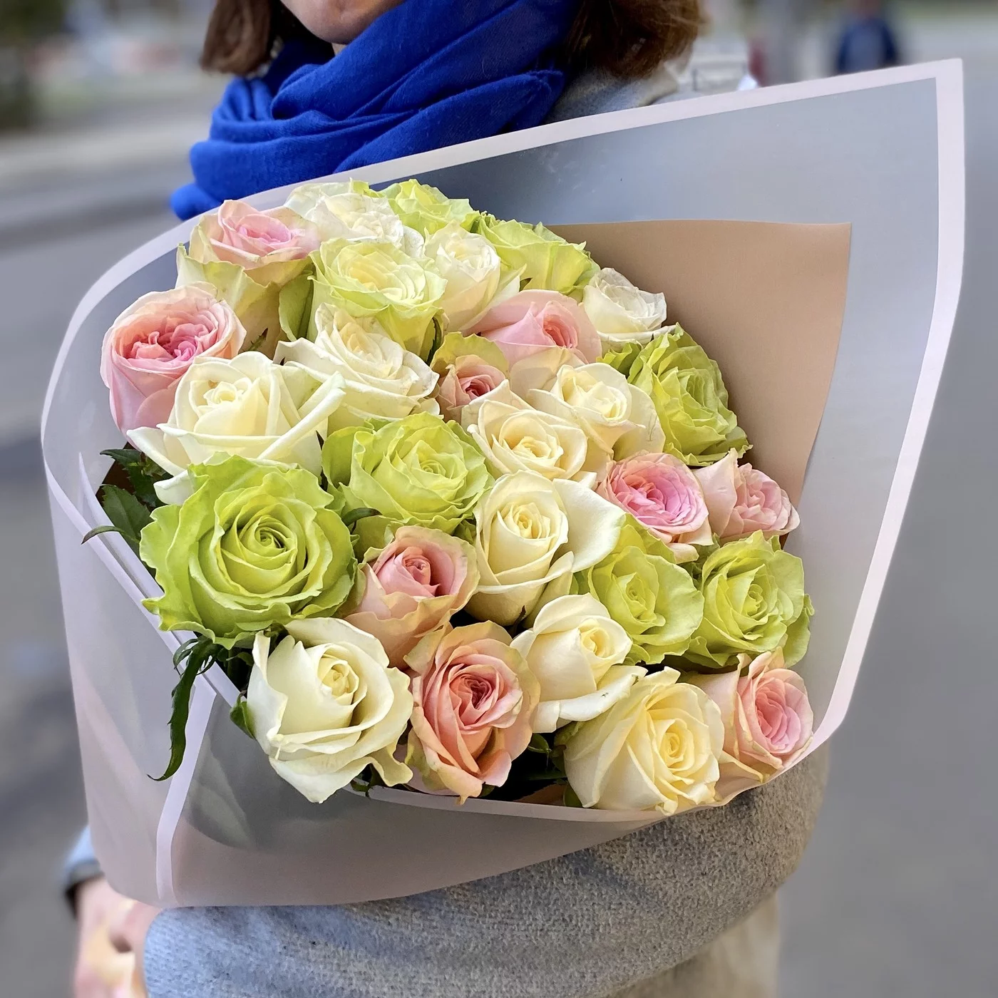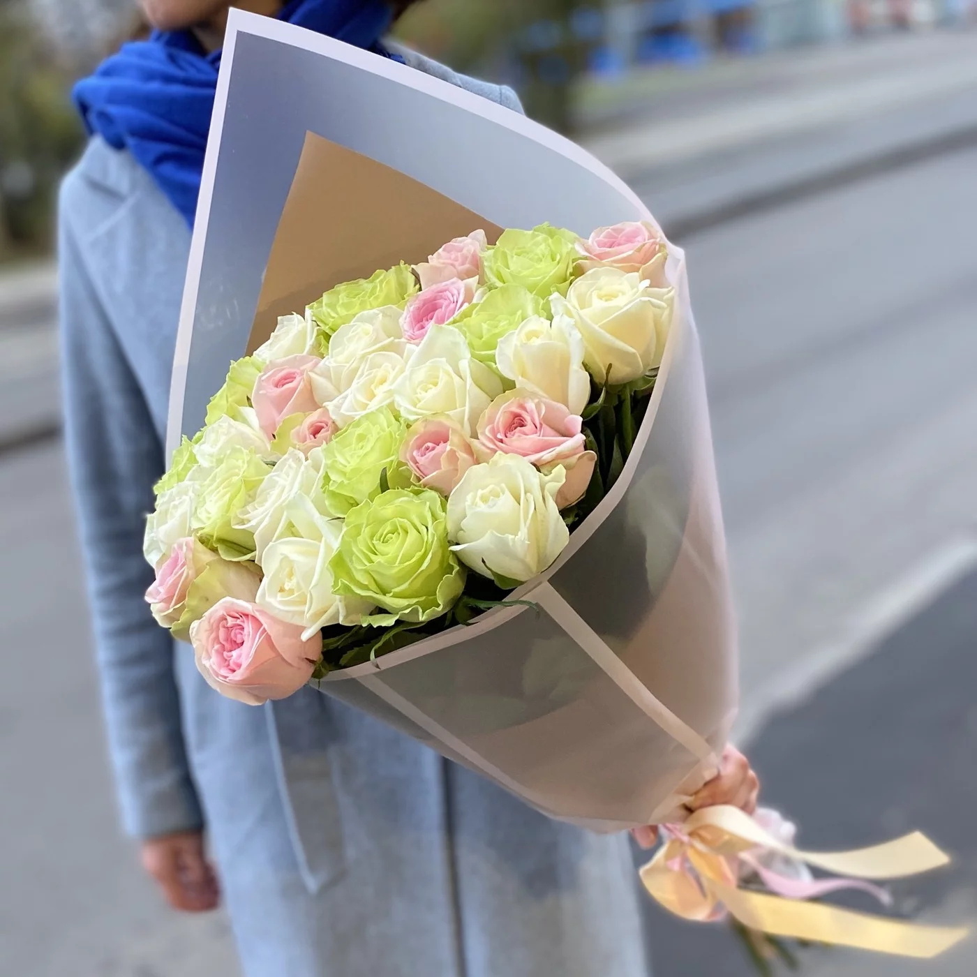 Легкий, яркий, воздушный, милый букет из ароматной розы станет приятным и незабываемым комплиментом для любимого человека.