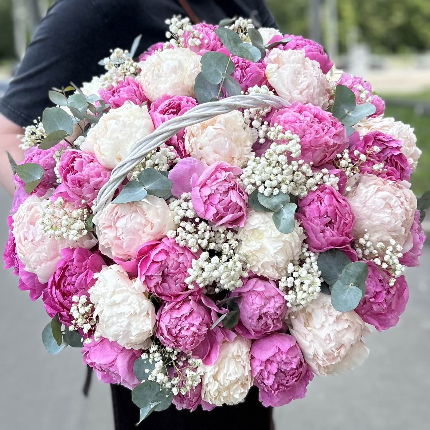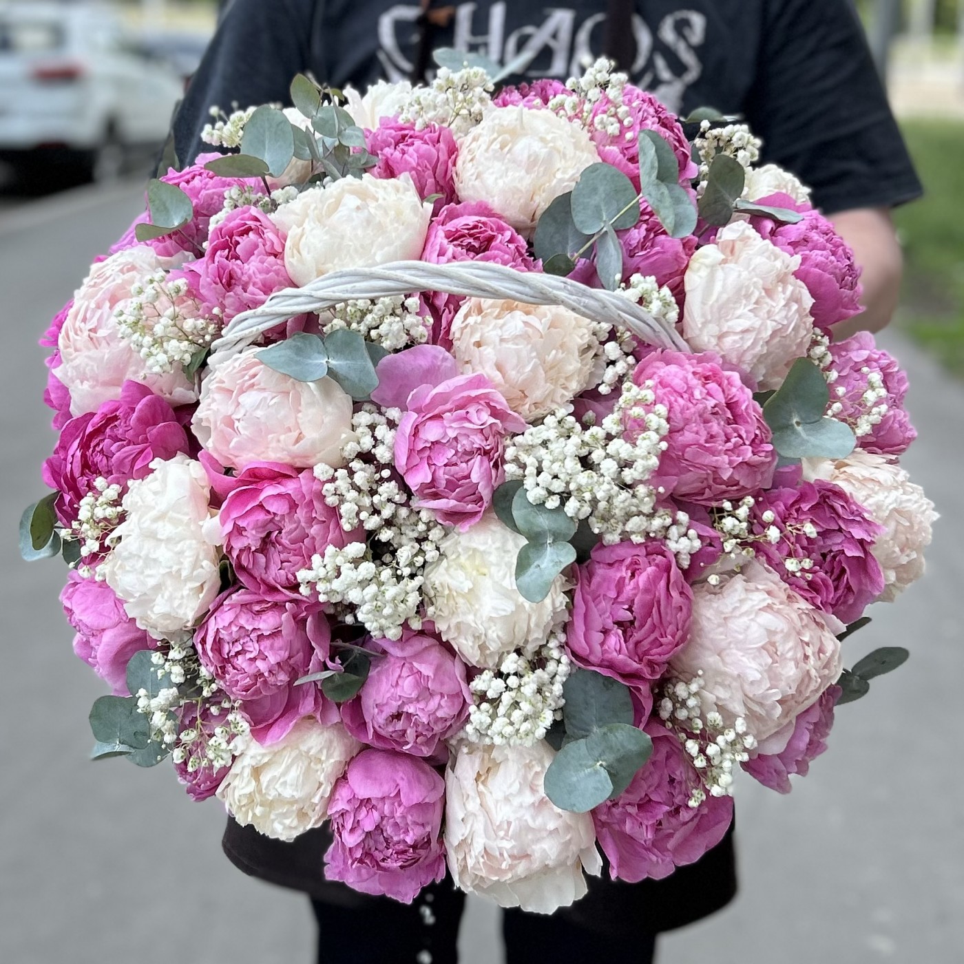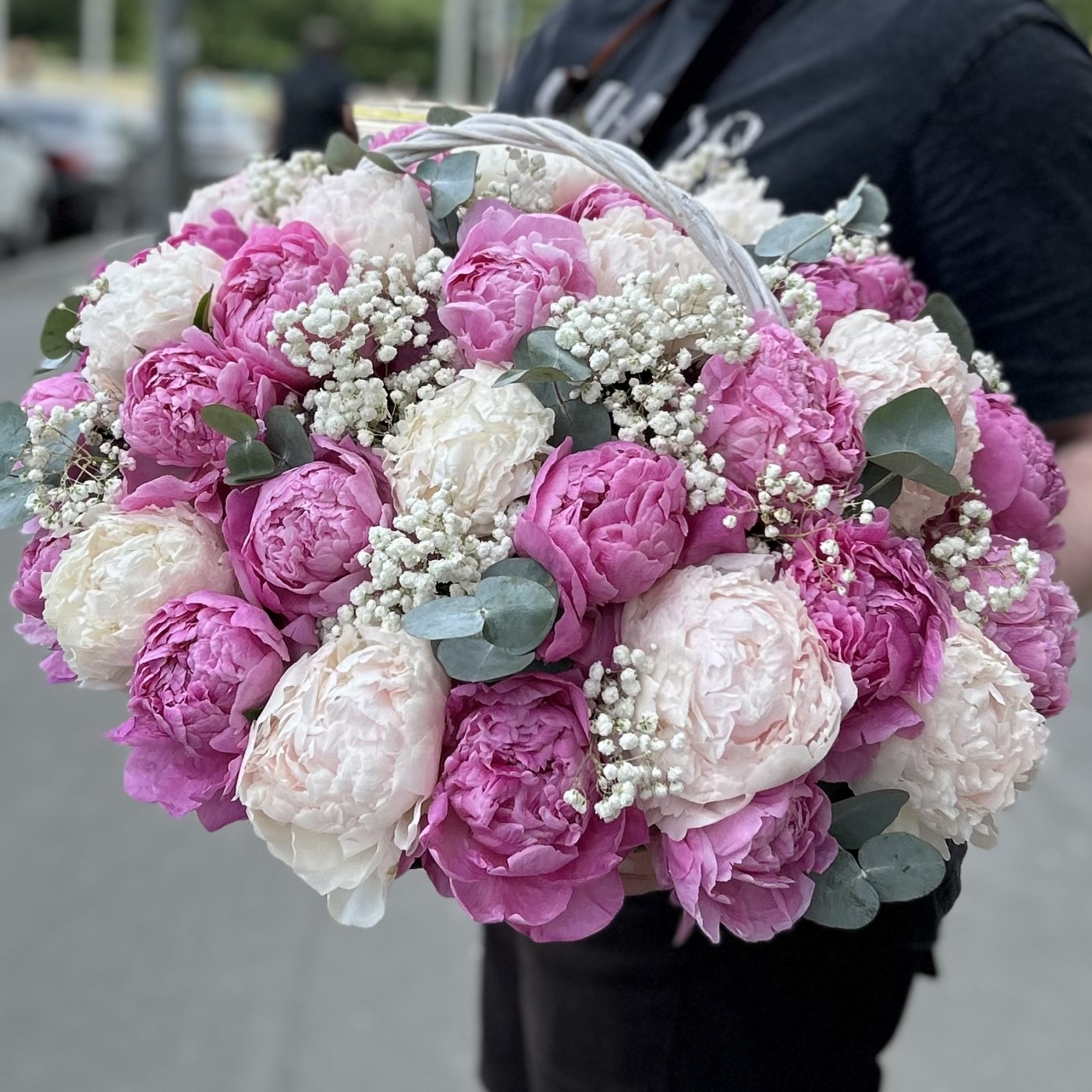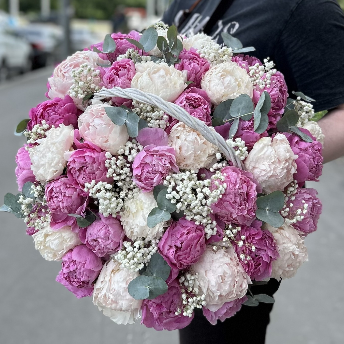 Нежные пионы с гипсофилой в корзине — это изысканная и романтичная композиция, которая создаст атмосферу уюта и красоты. Пионы, известные своей пышностью и ароматом, придают букету мягкость и элегантность, а гипсофила добавляет легкости и воздушности. Такая корзина отлично подойдет для подарка, украшения интерьера или особого события, подчеркнет нежность и утонченность момента. Этот букет обязательно порадует своей красотой и создаст теплое настроение.