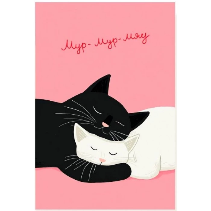 Открытка "Мур-мур-мяу" котики. К открытке прилагается конверт.