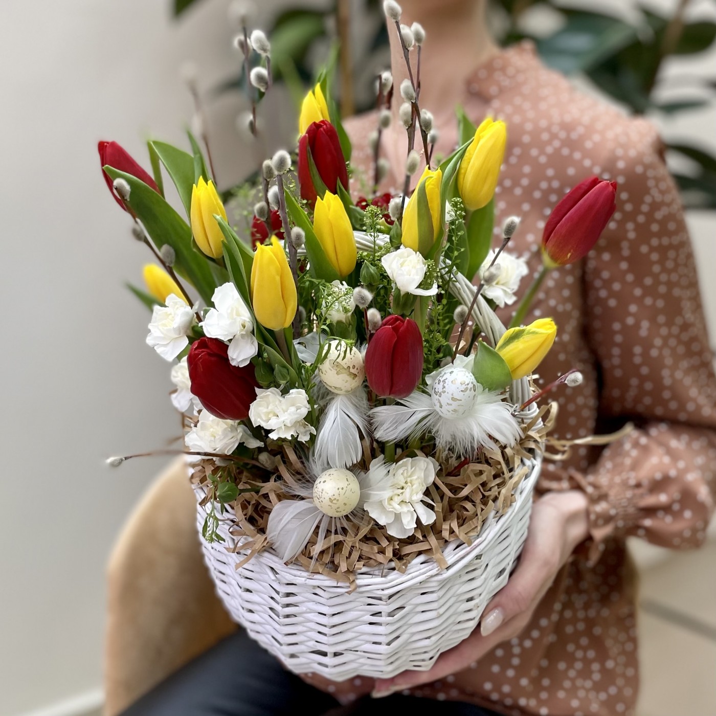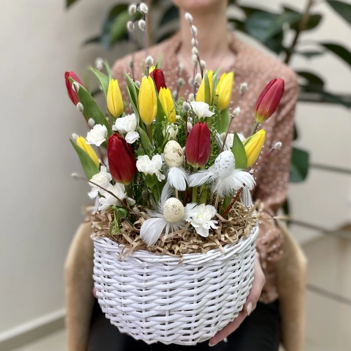 Пасхальная композиция с тюльпанами