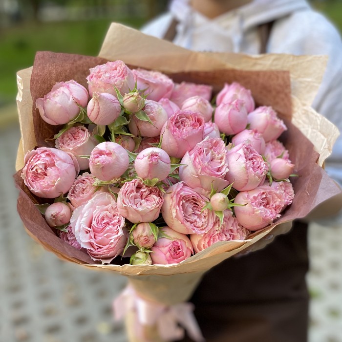 Букет из нежных пионовидных кустовых роз сорта Pink blossom напомнит получательнице о том, что у её избранника очень тонкий вкус. Подарите букет из пионовидных роз и она точно не устоит!