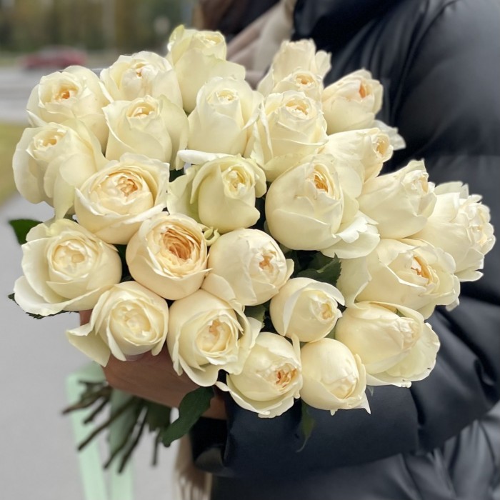 На фото представлен букет из 25 роз.