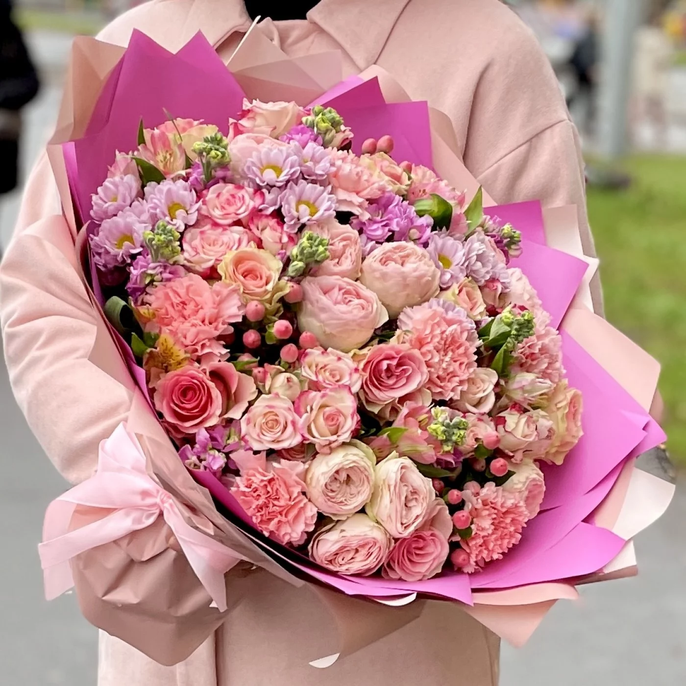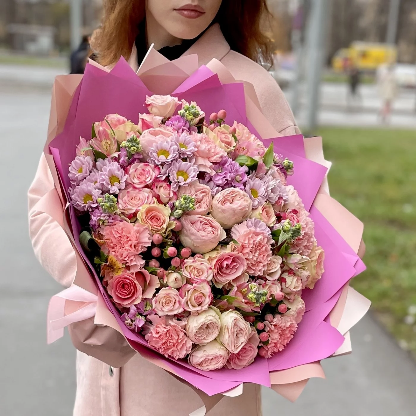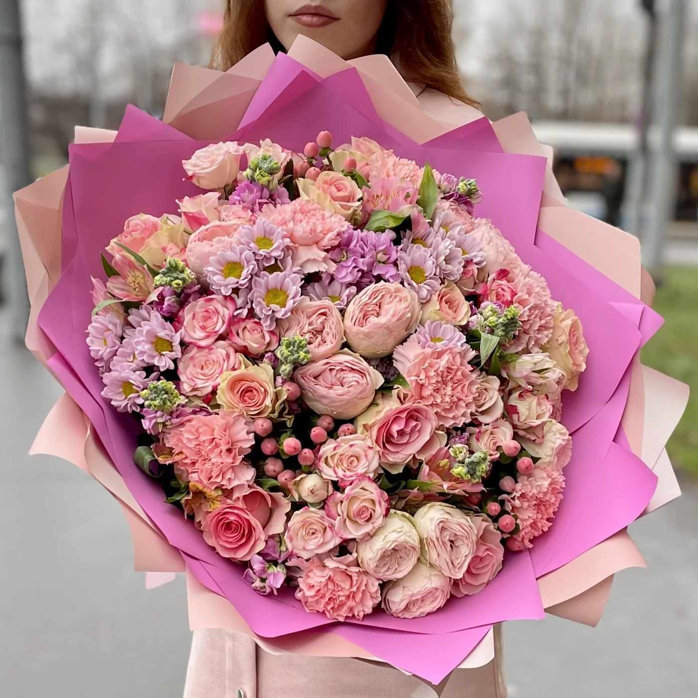 Розовый, насыщенный, ягодный букет, который удобно захватить на свидание. Такой букет подчеркнет глубину ваших чувств и станет роскошным комплиментом.