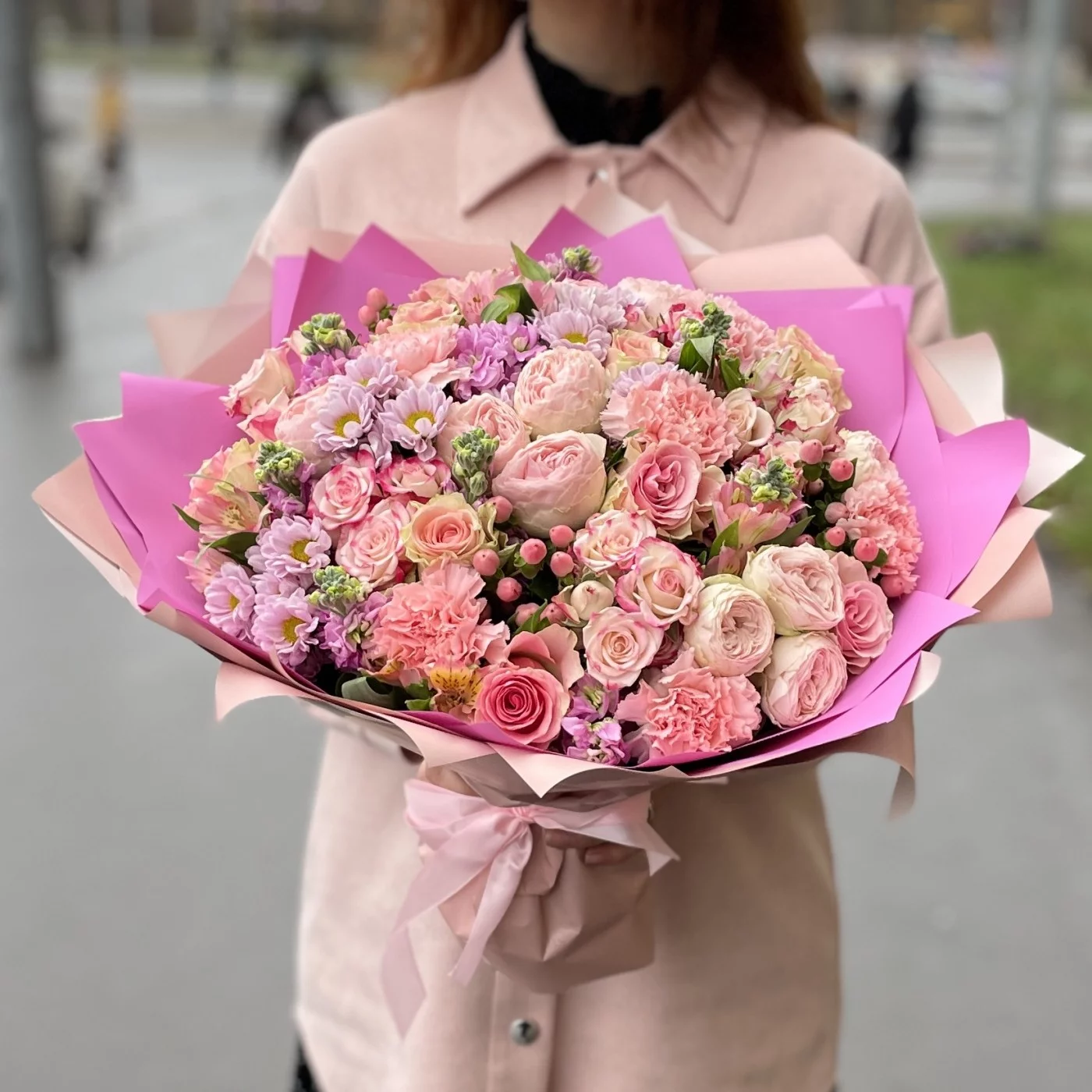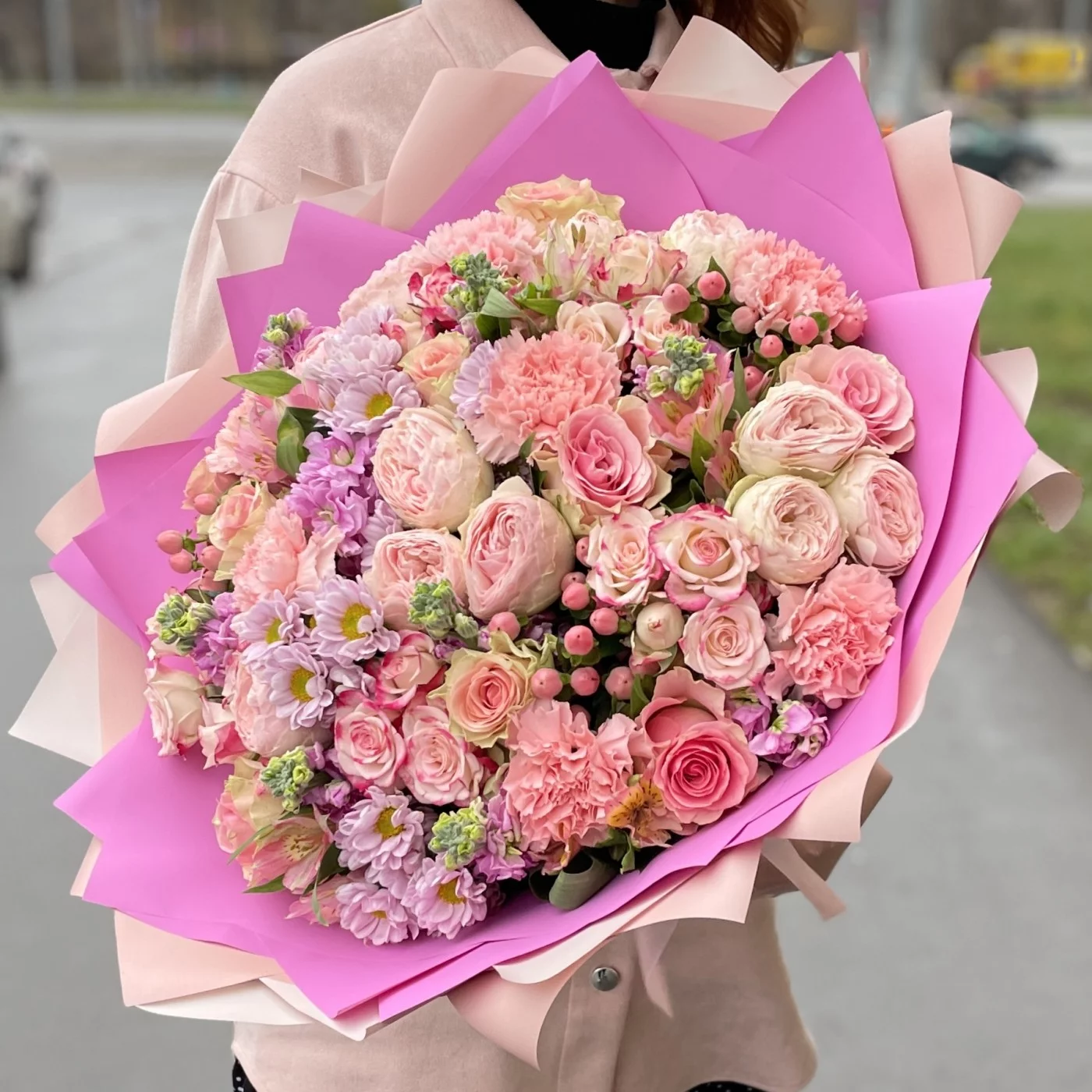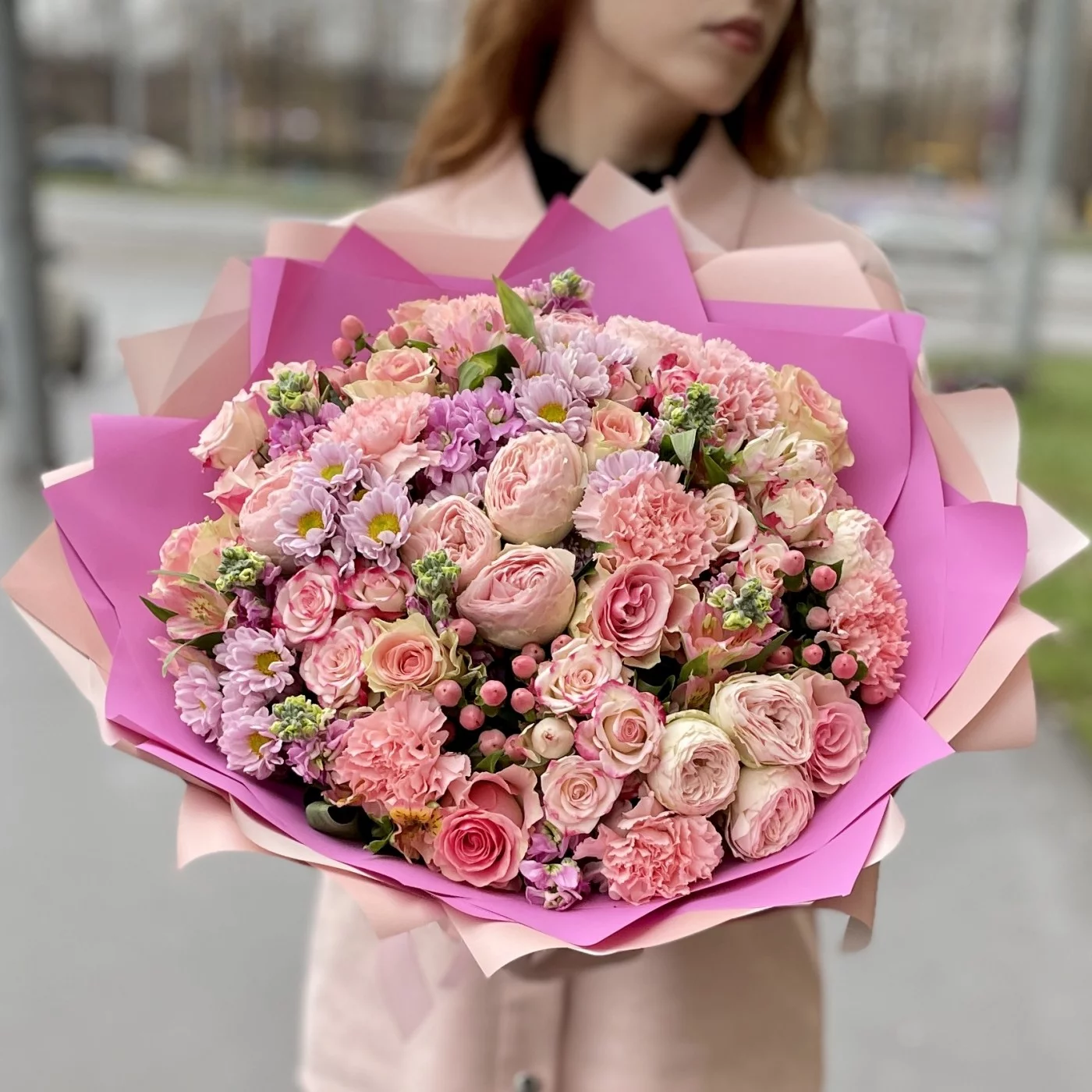 Розовый, насыщенный, ягодный букет, который удобно захватить на свидание. Такой букет подчеркнет глубину ваших чувств и станет роскошным комплиментом.