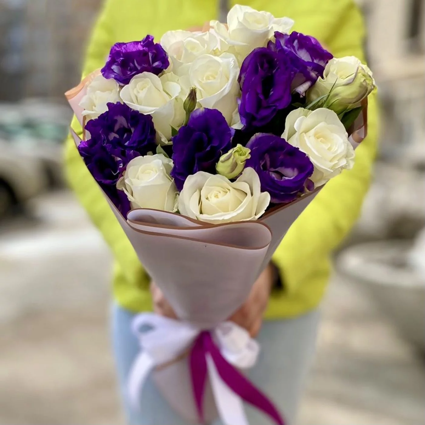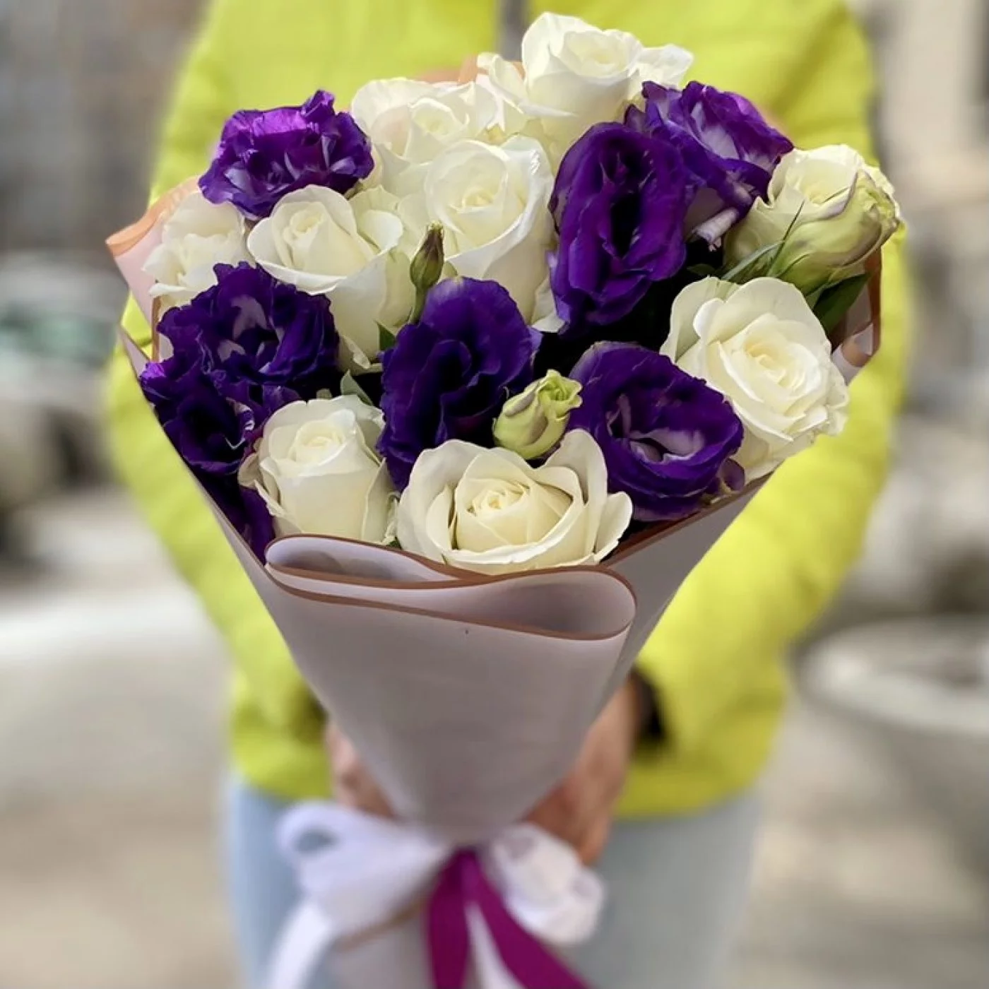 Фиолетовый букет эустом и роз