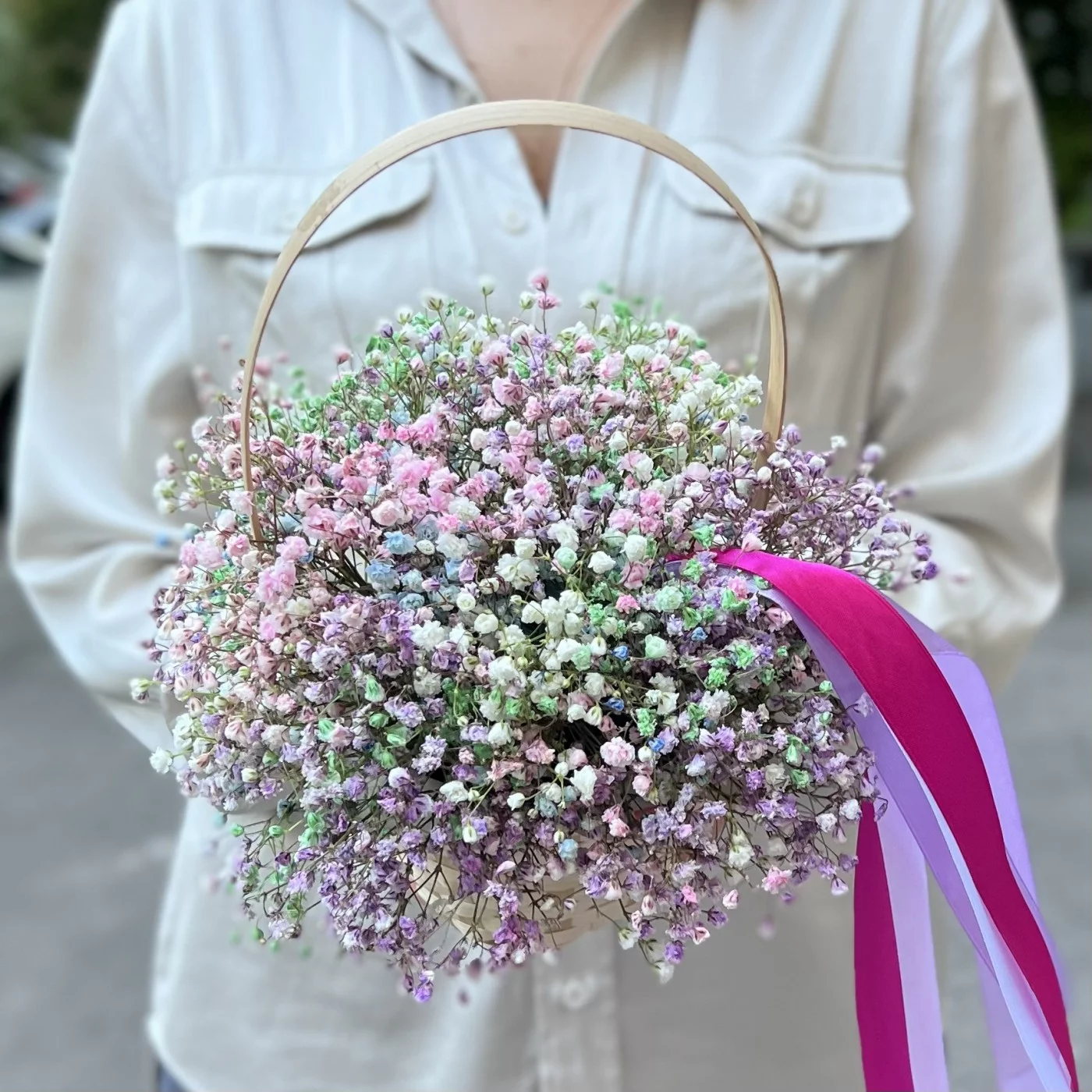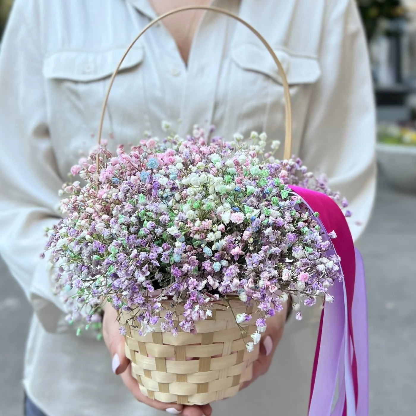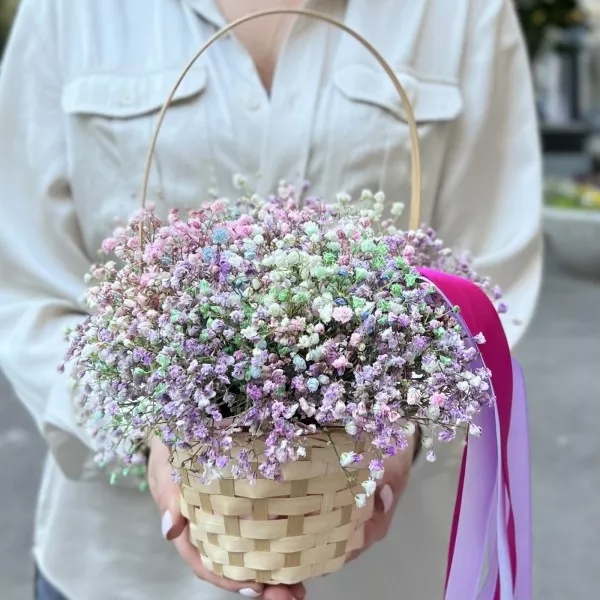 Радужная гипсофила в корзине