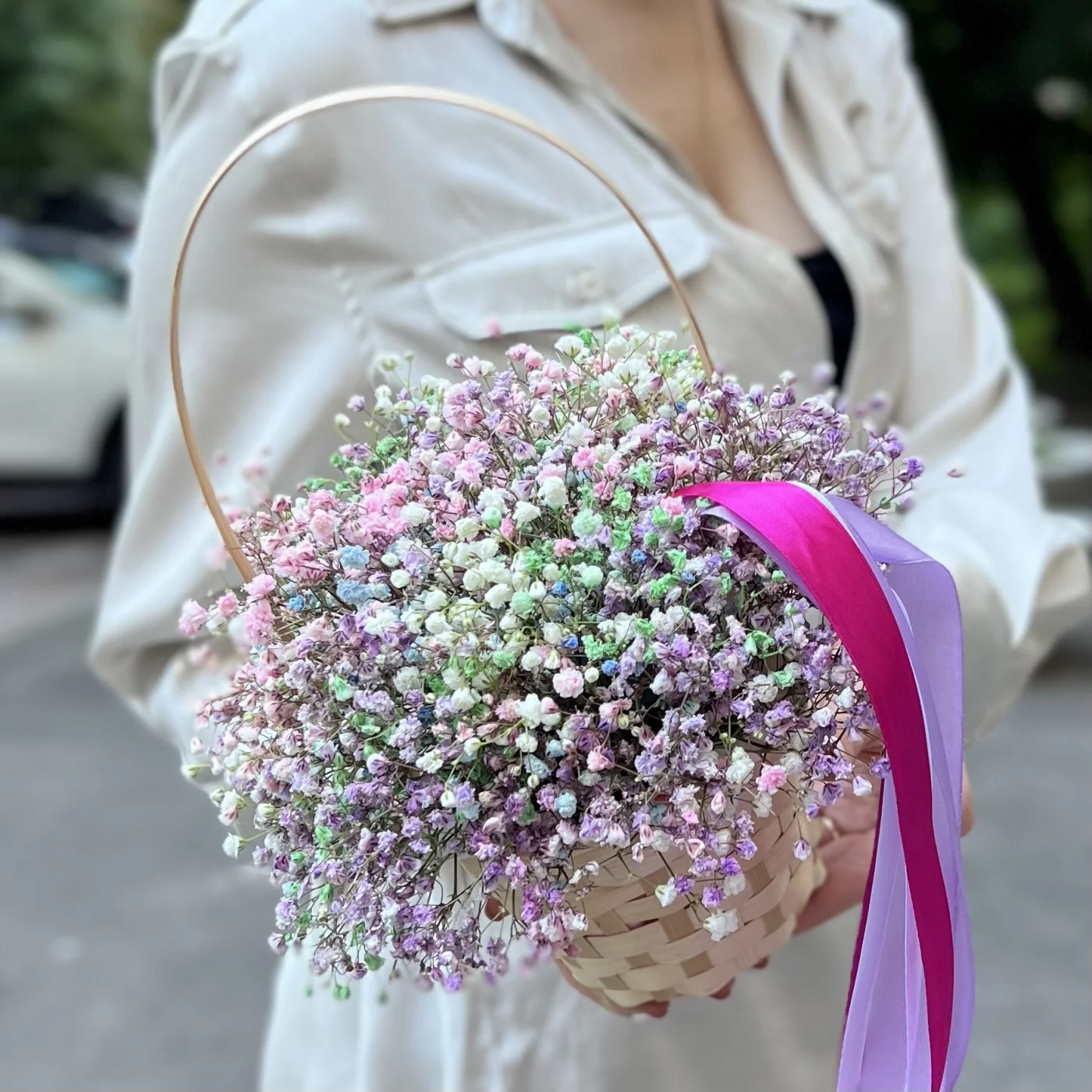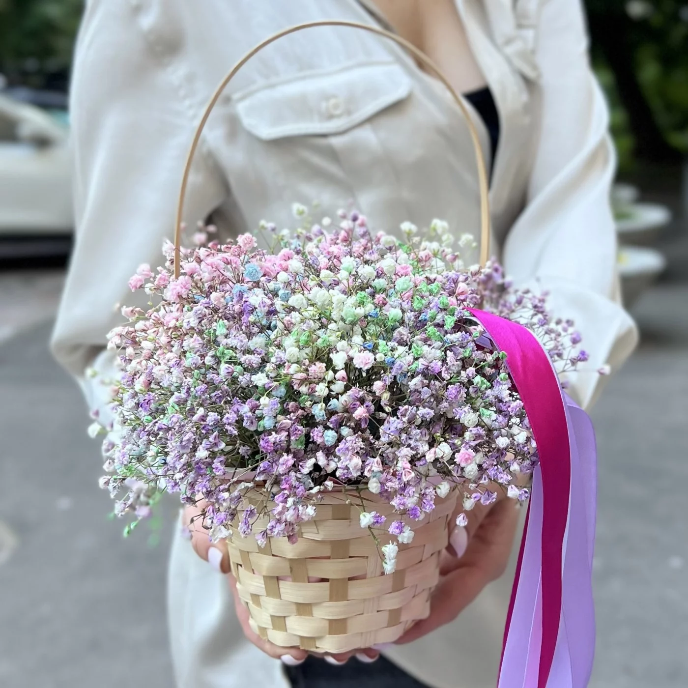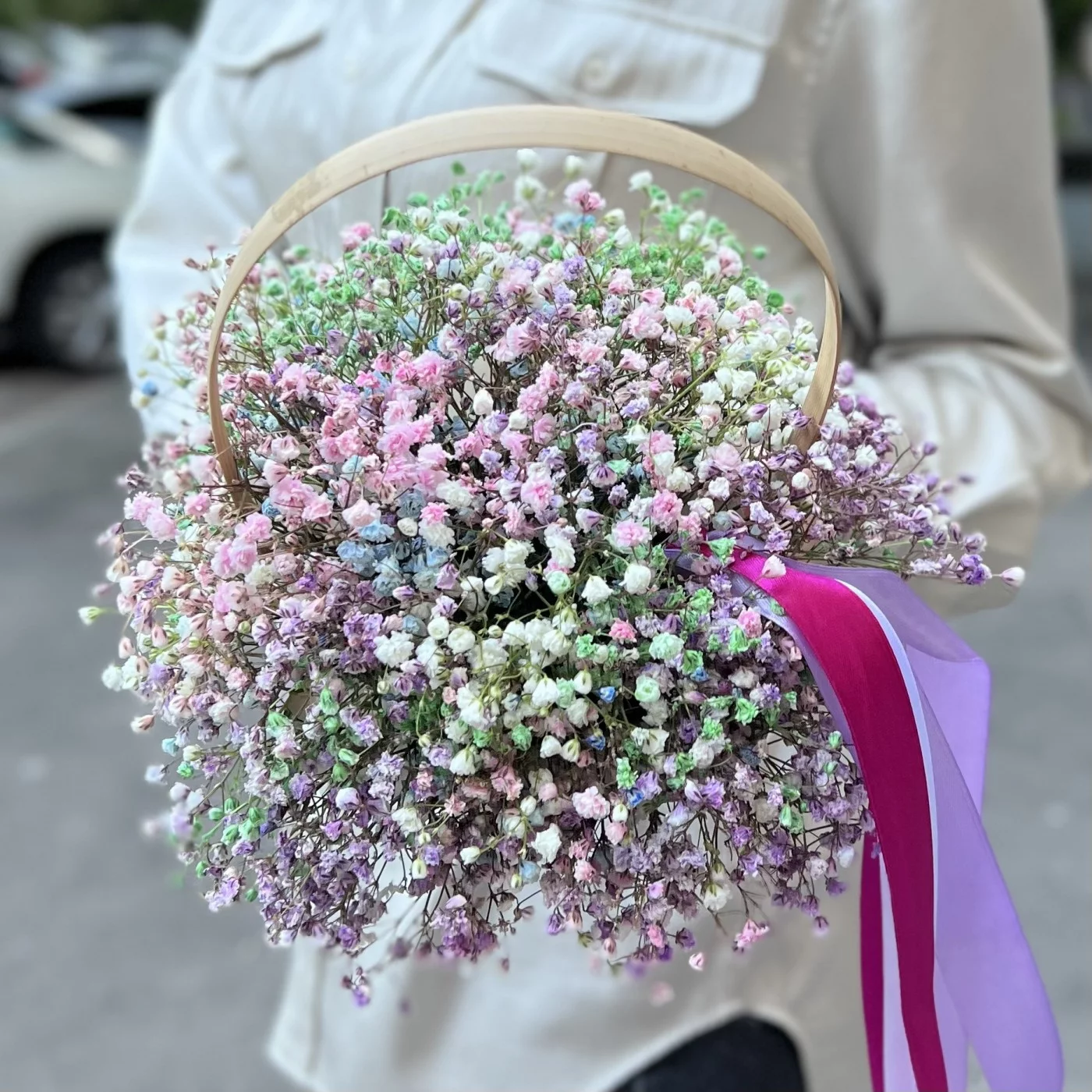 Радужная гипсофила в корзине