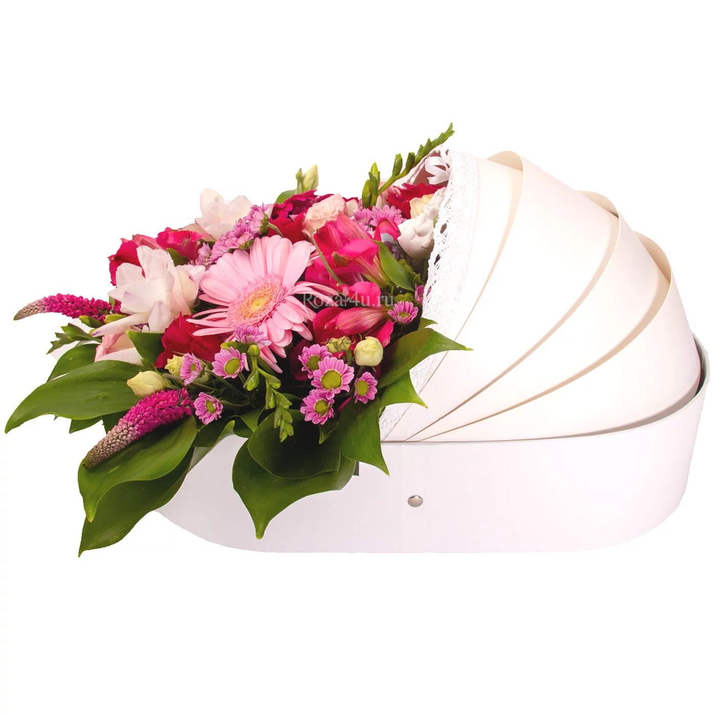 Спасибо,очень понравилась композиция цветы в коляске! Доставка вовремя.
