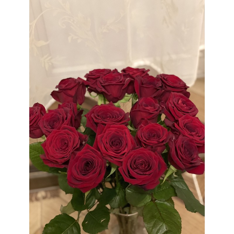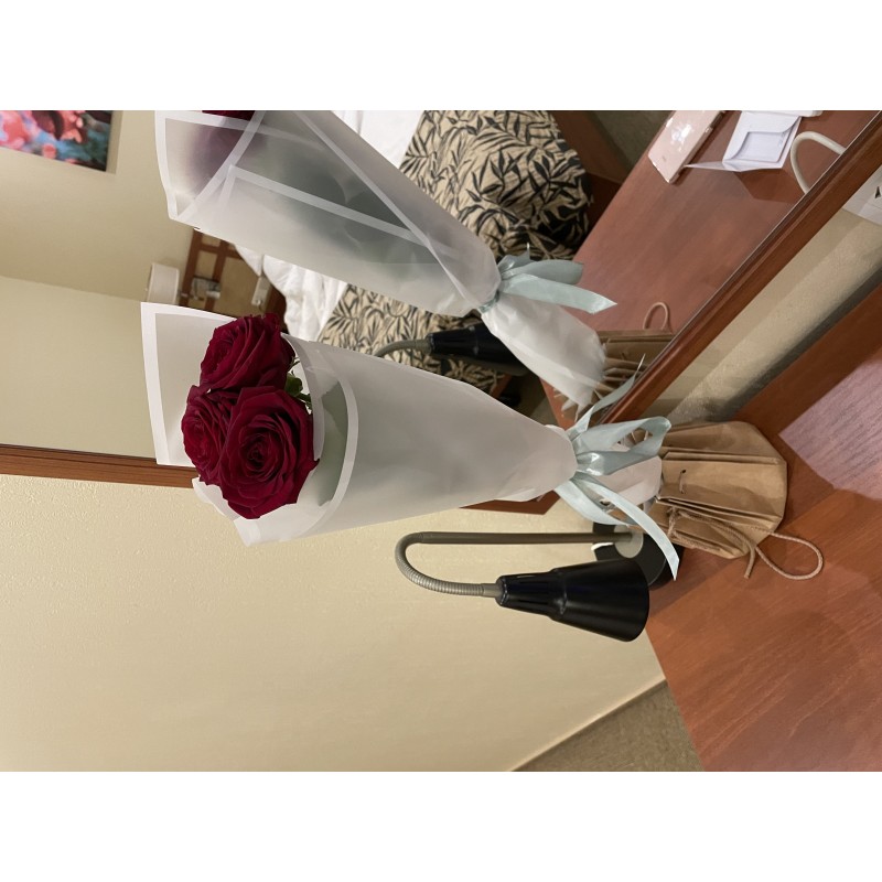 К сожалению, немного огорчило, что не оказалось выбранной длины стебля (70-80 см) выбранных цветов (роз). Была предложена альтернатива - такой же длины, но другого цвета. Поскольку был принципиален цвет (красный), утвердила с меньшей длиной.