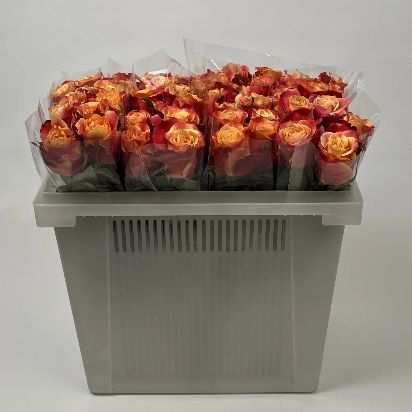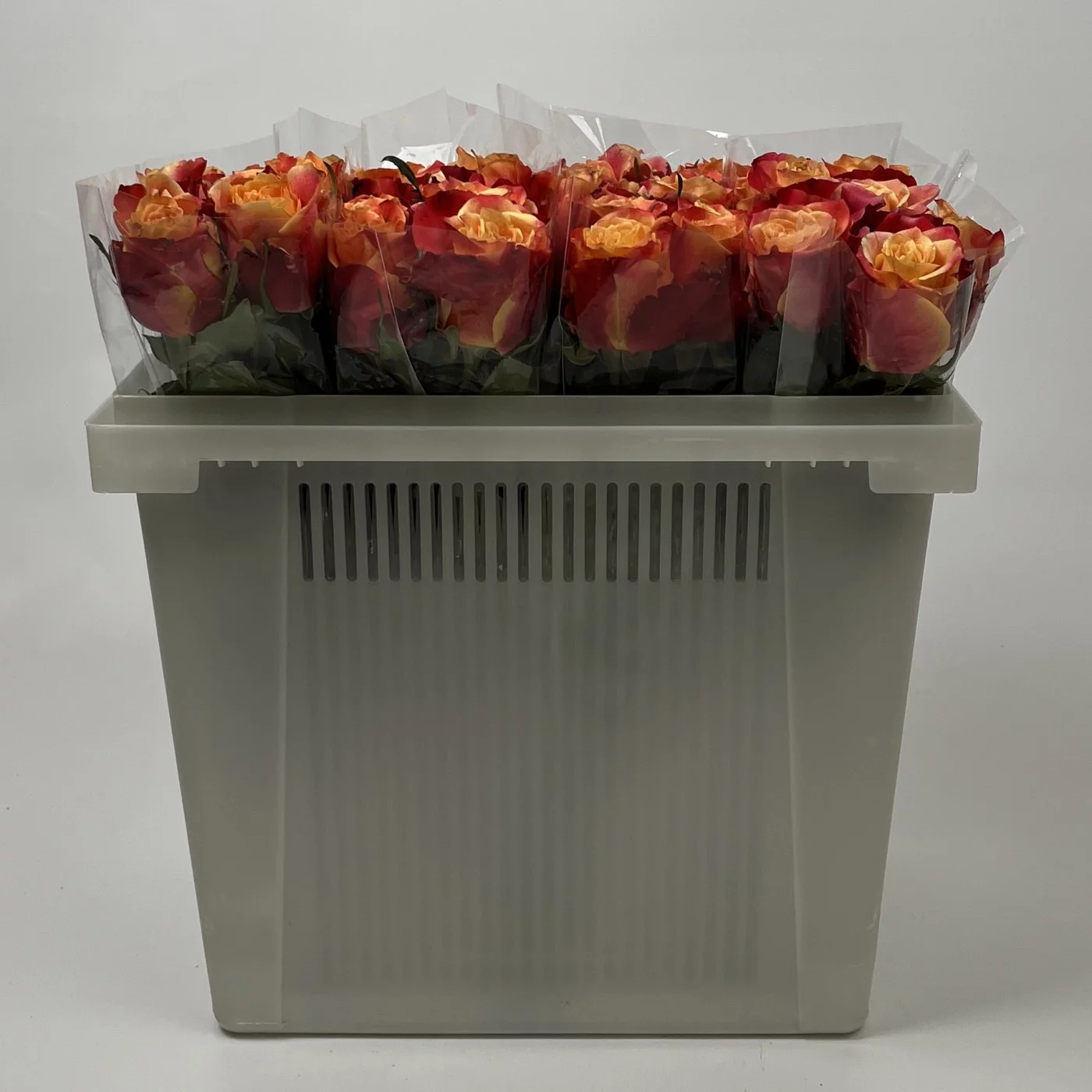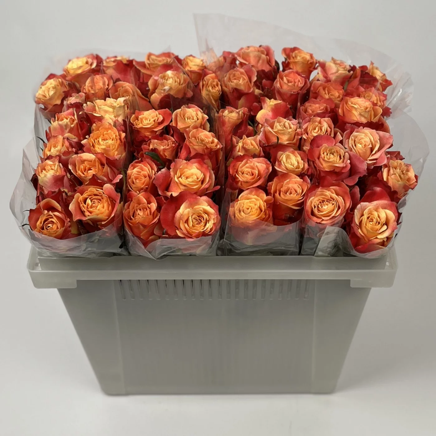 Яркая и насыщенная роза высотой 40 см с оранжево-красными лепестками. Эта сортовая роза отличается объемными, густыми цветами и яркой, контрастной окраской, которая прекрасно подходит для украшения букетов и композиций