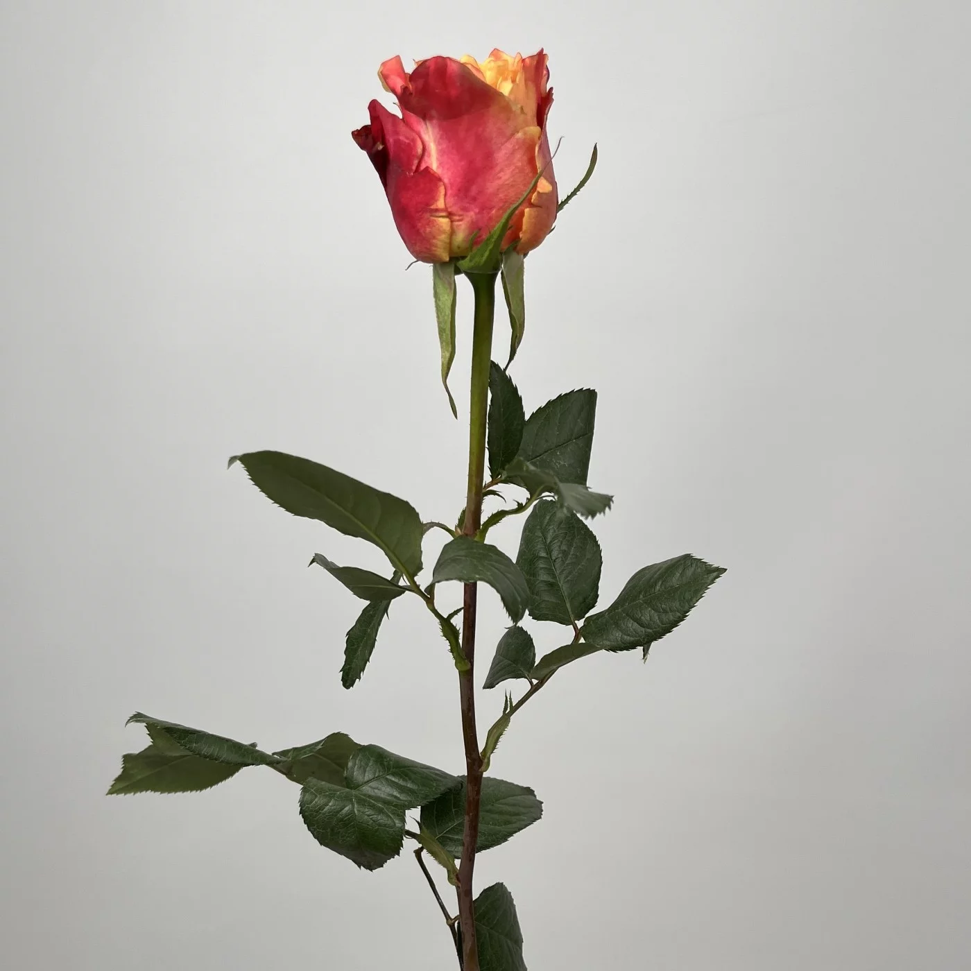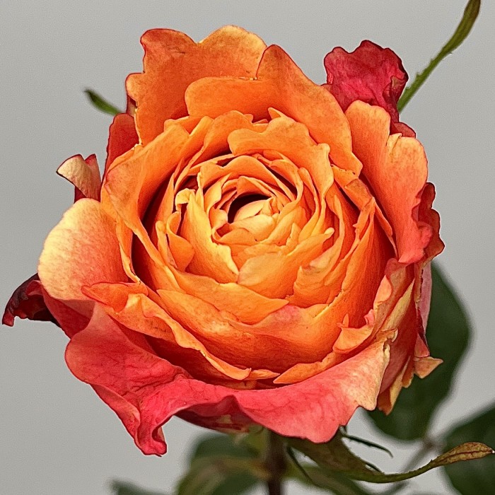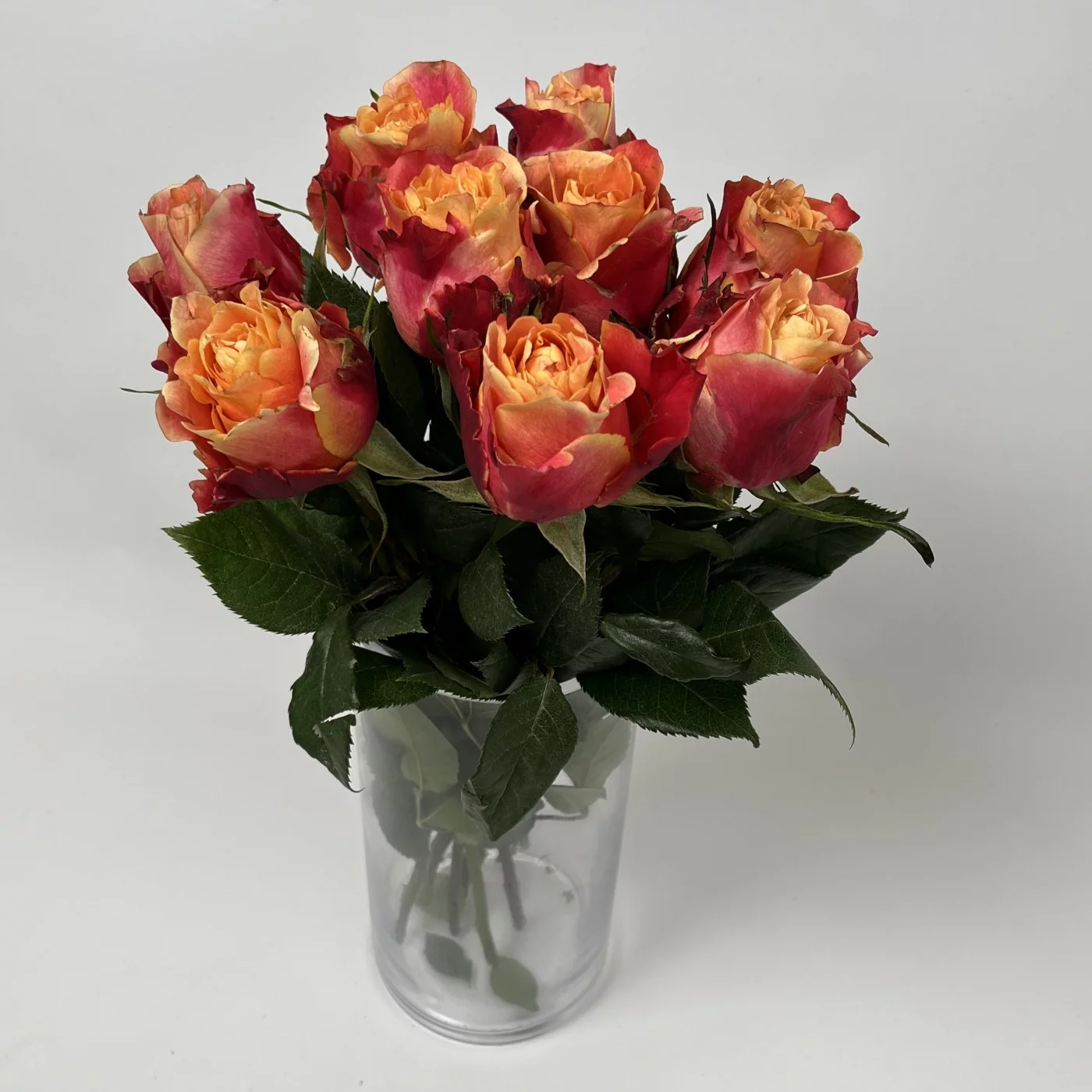 Яркая и насыщенная роза высотой 40 см с оранжево-красными лепестками. Эта сортовая роза отличается объемными, густыми цветами и яркой, контрастной окраской, которая прекрасно подходит для украшения букетов и композиций