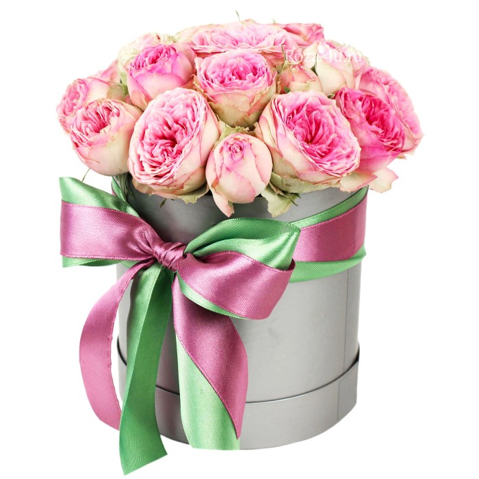 Пионовидные розы в коробке Аметрин (Ametrine)