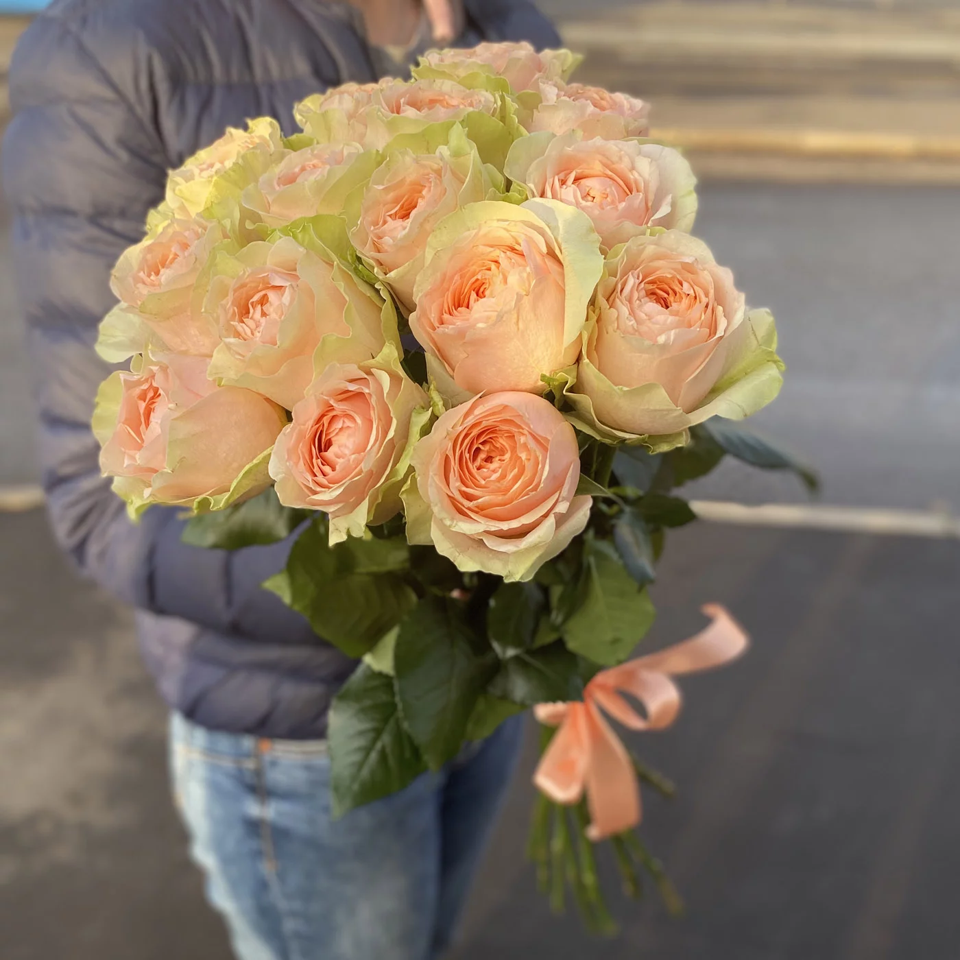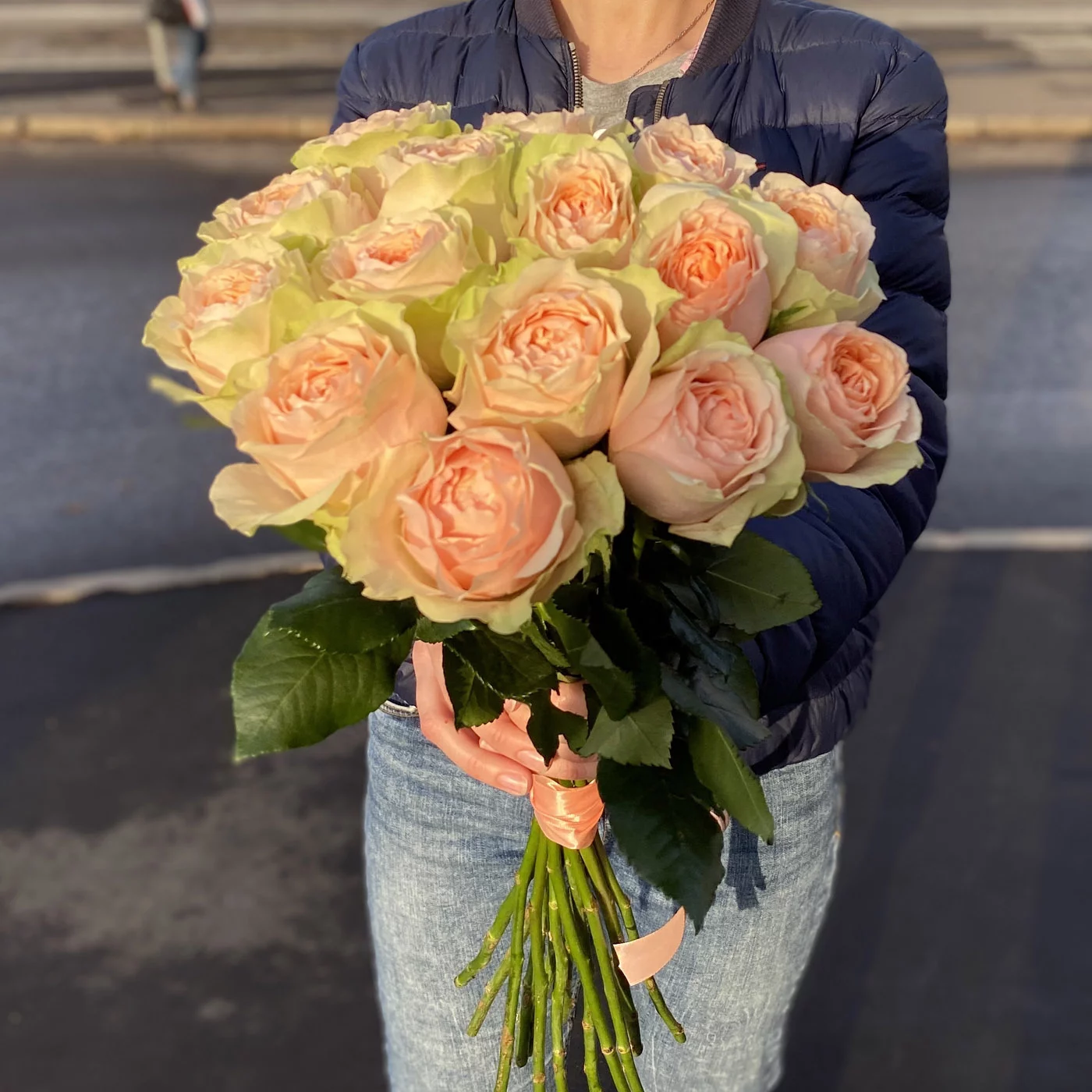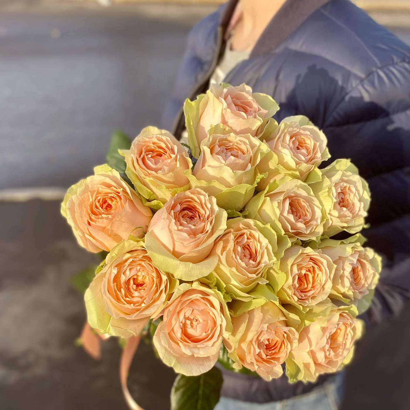 Роскошные кремовые розы - восхитительный нежный подарок к любому торжеству. Купить недорого поштучно пионовидные розы можно удобно и выгодно на нашем сайте.