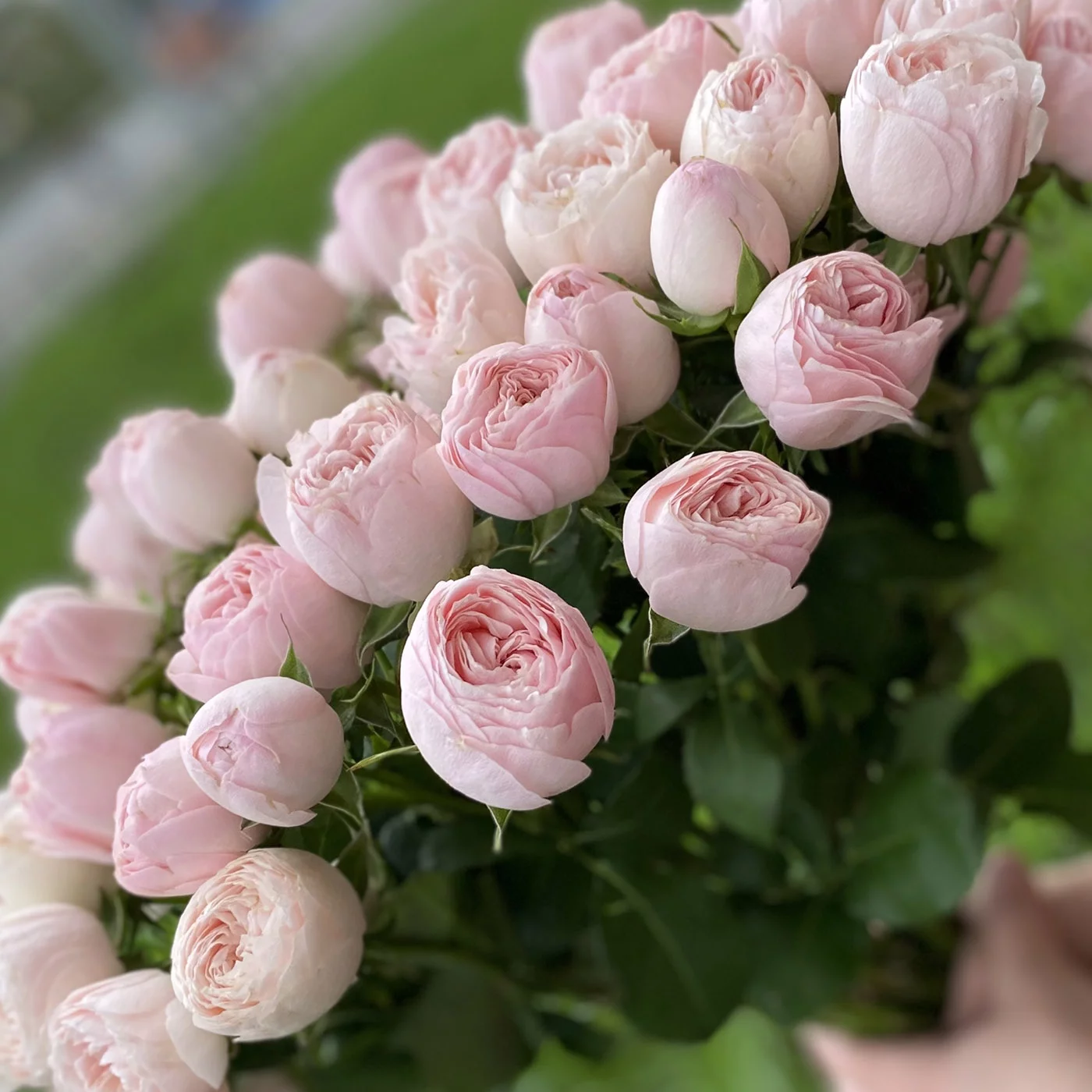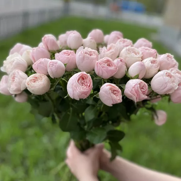 На фото представлен букет из 10 кустовых пионовидных роз сорта Мансфилд парк (Mansfield park)