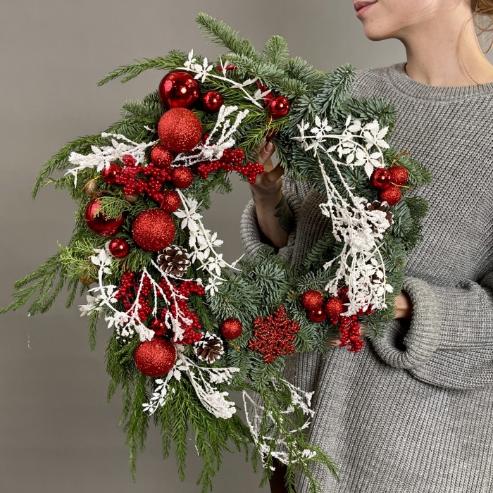 Рождественский венок с красным и белым декором станет не только прекрасным украшением вашего дома, но и символом тепла и уюта в зимние праздники. Он создаст атмосферу радости и волшебства, напоминая о традициях и семейных ценностях.