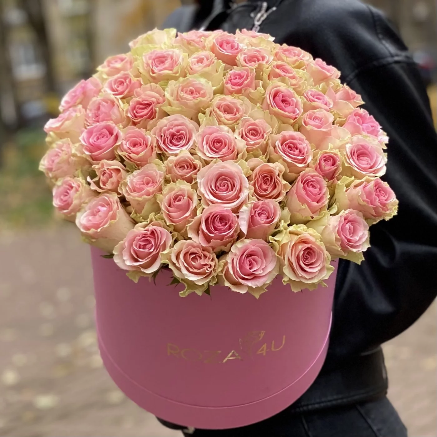 Роскошная цветочная композиция из нежных розовых роз, собранная в шляпной коробке удивит самую капризную девушку! Это символ глубоких чувств и уважения. Эксклюзивная композиция от наших профессиональных флористов специально для Вашего получателя.