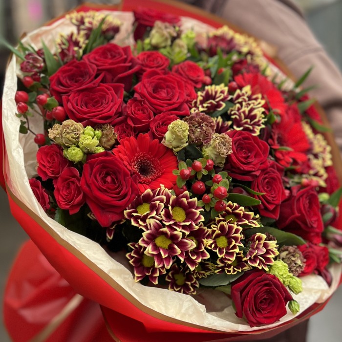 Красный букет на юбилей — символ страсти, любви и достоинства. Такой букет идеально подчеркнет важность памятного юбилейного торжества и станет роскошным подарком для именинника или именинницы.