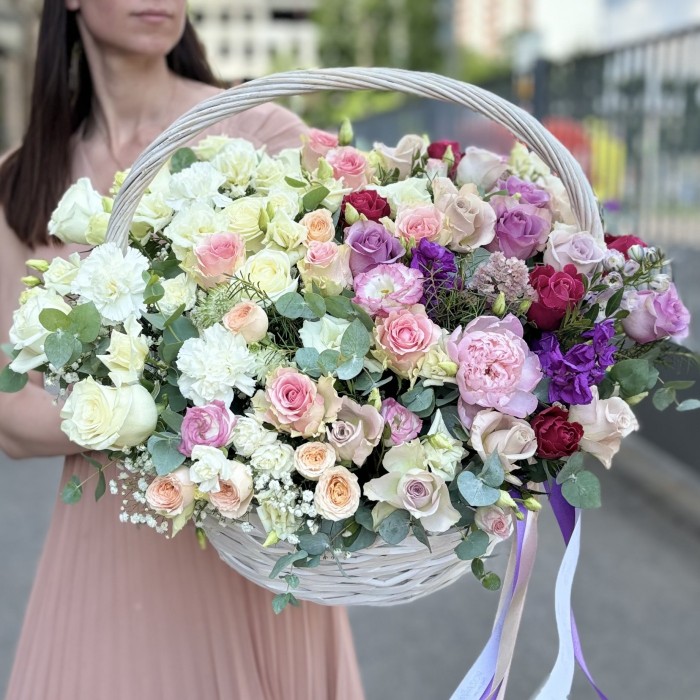Состав и сорт цветов могут отличатся от фото, цветовая гамма композиции будет сохранена.