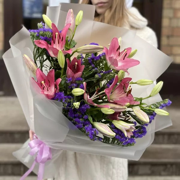 Сборный букет из розовых лилий — это универсальный и изысканный подарок, который подойдет для любого повода: от дня рождения до свадьбы или просто как знак внимания к близкому человеку.
