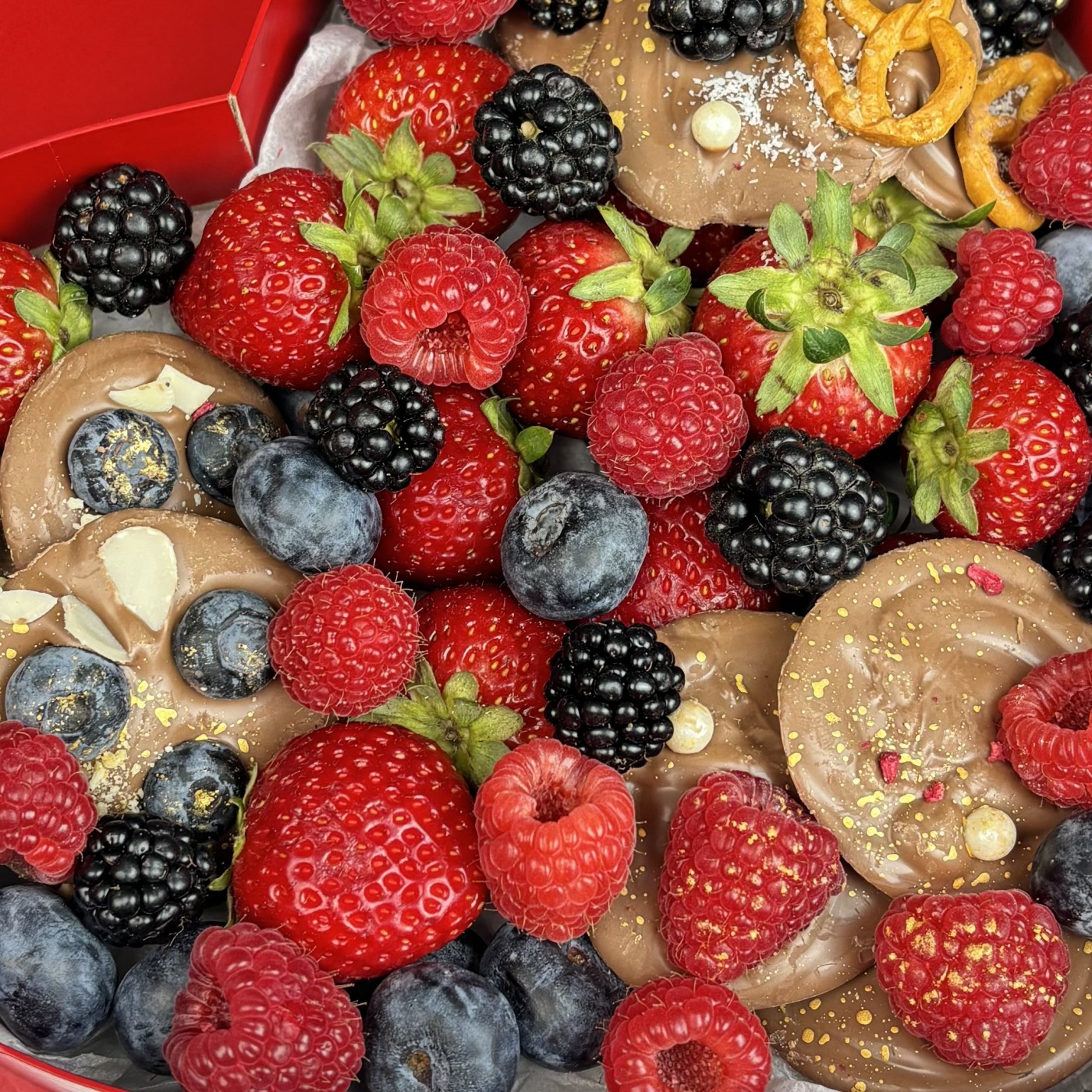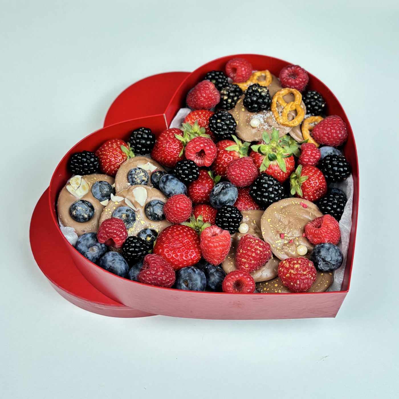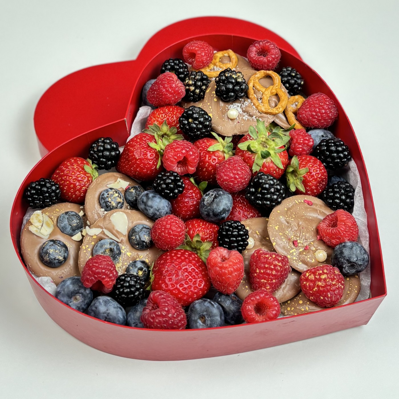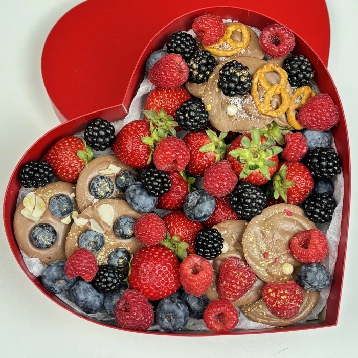 Очень красивый и очень вкусный набор из свежих ягод и шоколада ручной работы. Подарите своей любимой шикарный подарок.