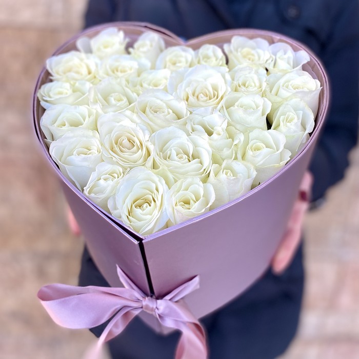 Белые розы в сердце-шкатулке