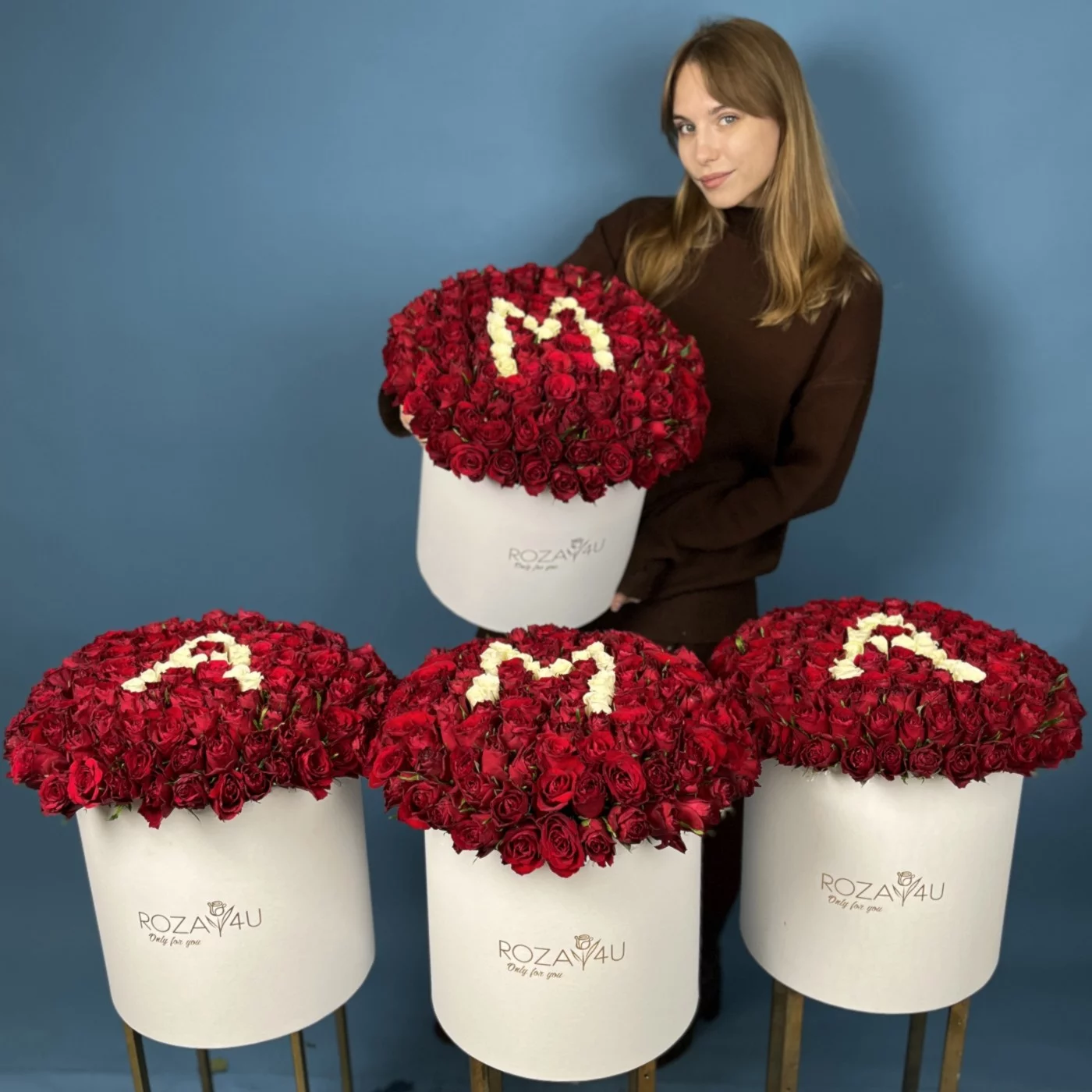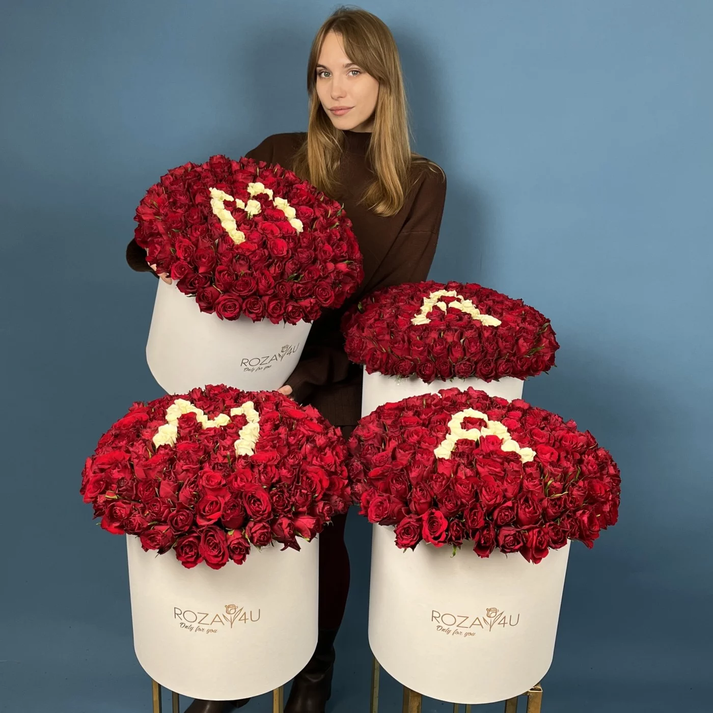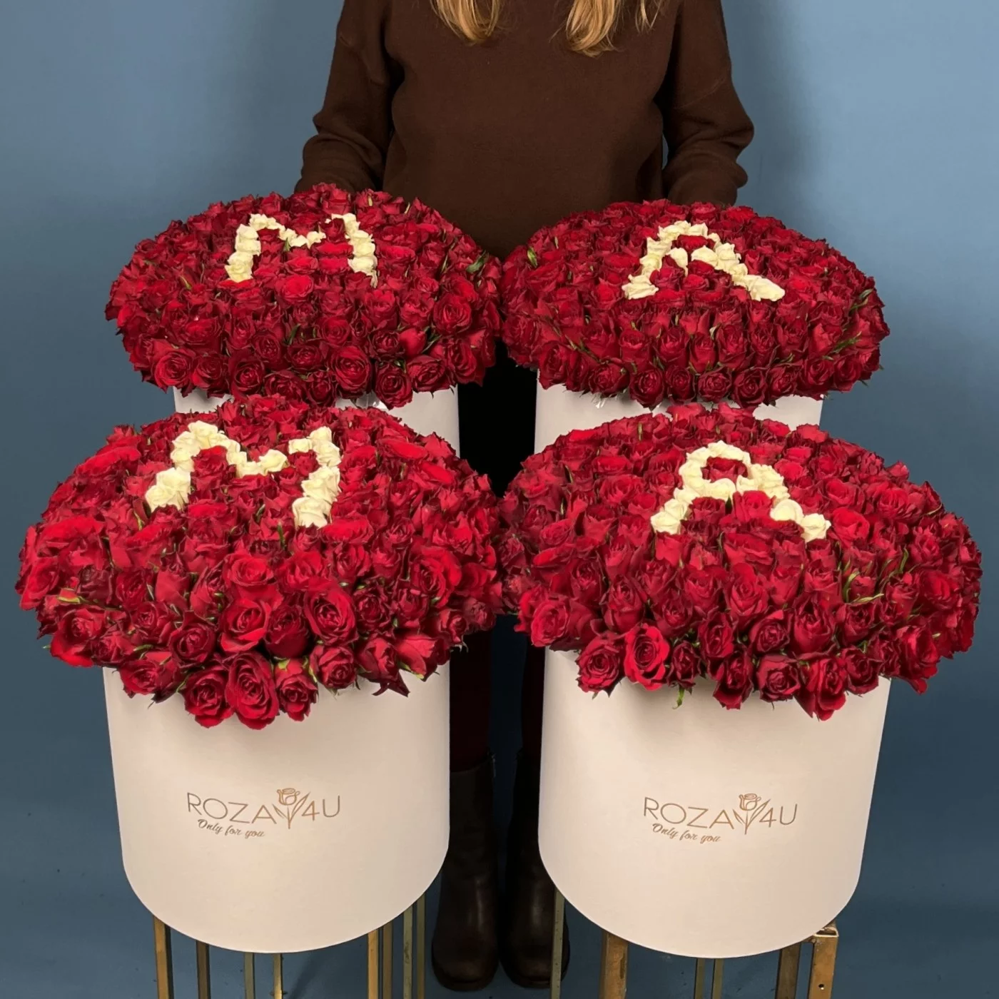 Сет из 4 больших коробок с розами Мама